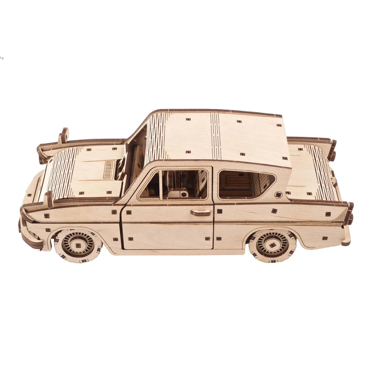 Unikněte ze světa mudlů! Stavebnice ikonického románového automobilu vyrobená z překližky. Podnikněte dobrodružnou cestu za hranice všednosti, do světa knihy a filmu Harry Potter a Tajemná komnata. Relaxujte při stavbě svéhlavého létajícího Fordu Anglia rodiny Weasleyových a nechejte se pobavit jeho důvtipnými funkcemi.