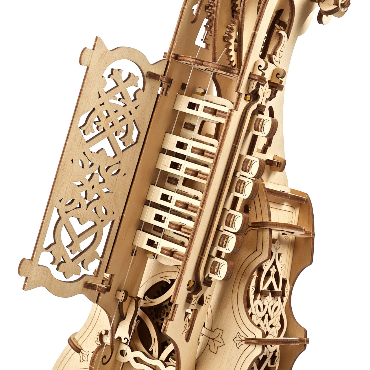 Už při stavbě můžete dát vydatně odpočinout své mysli od všedních starostí. Sestavování Vás nezaskočí náročností a v jeho průběhu budete odměňováni atraktivními detaily, ať už nápaditými ornamenty, nebo pohybem planetového převodu. Jak bude nástroj pod Vašima rukama ožívat, zažijete vzrušující zábavu. Hotový model Vám přinese pocit hrdosti a uspokojení. A co teprve až se na něj začnete učit hrát!