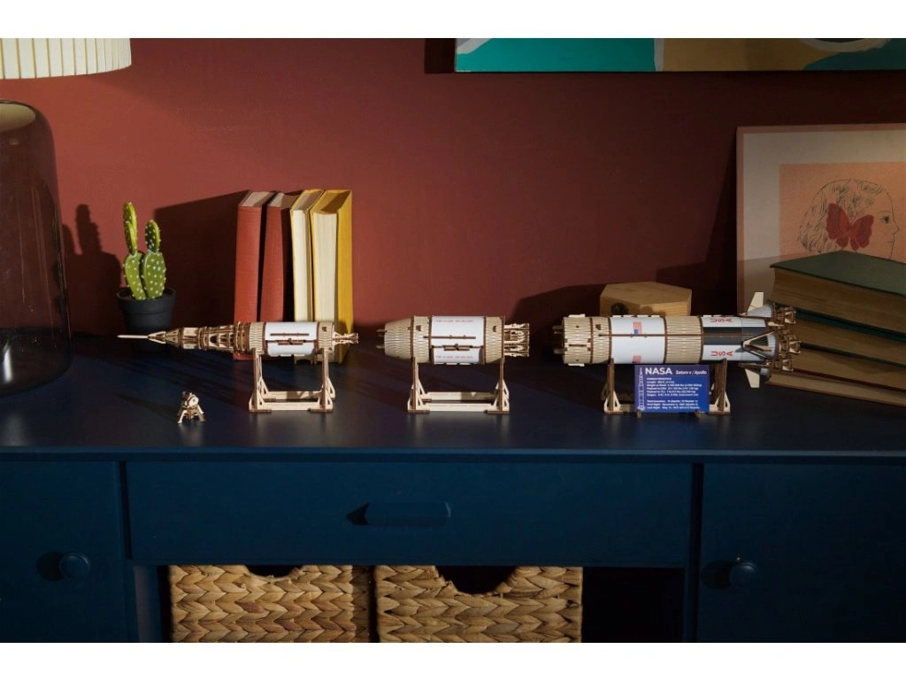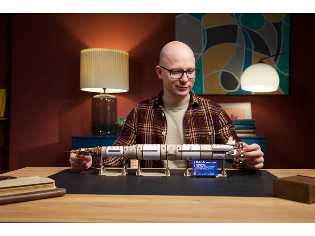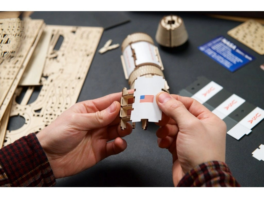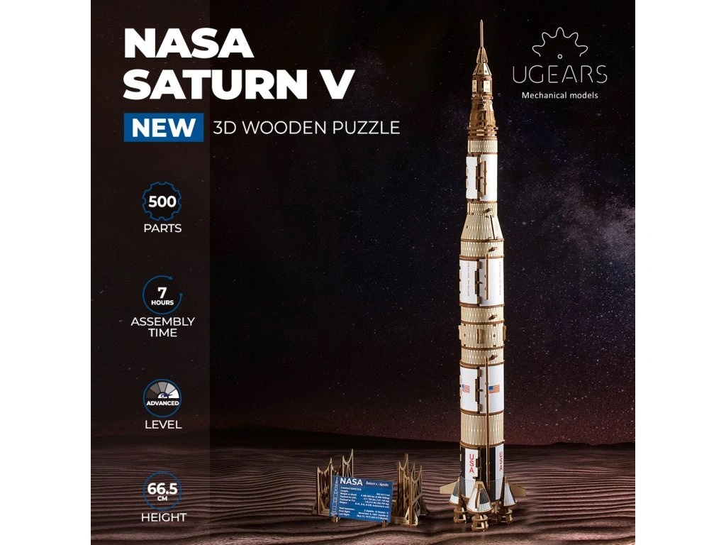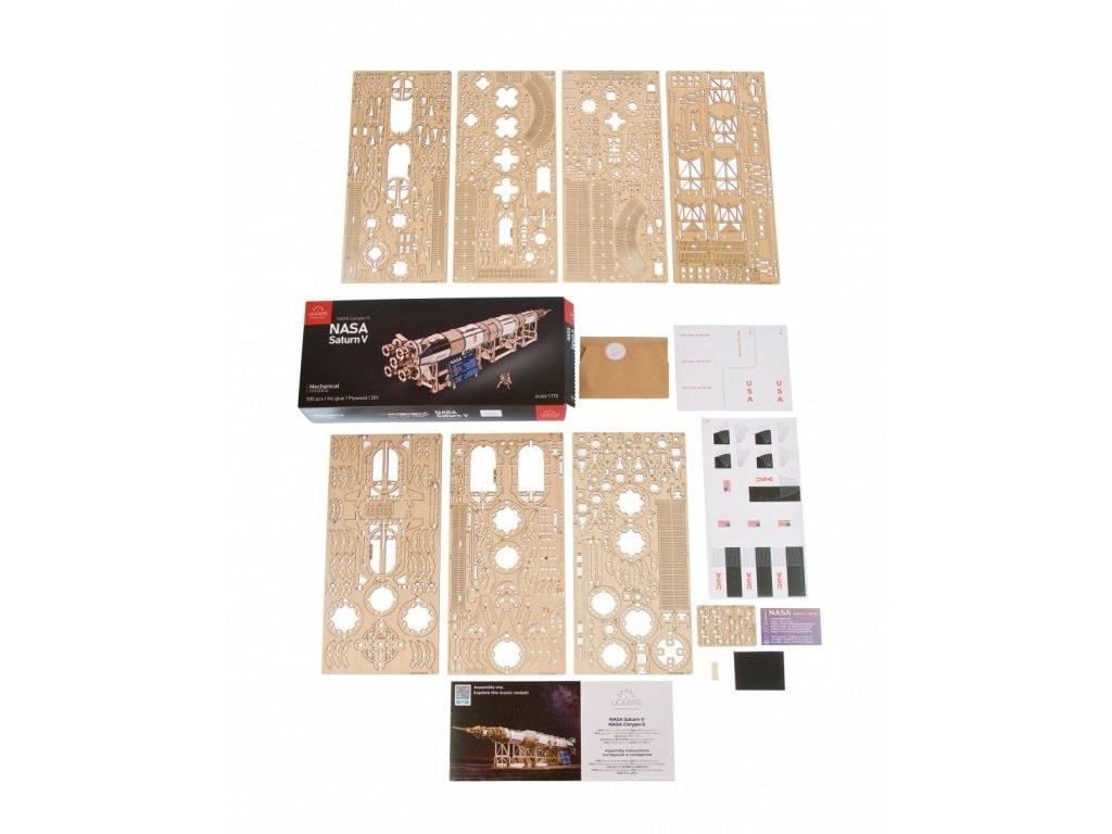 Nyní si můžete splnit sen o stavbě legendární rakety, která dopravila prvního člověka na Měsíc. Představujeme Vám UGears Saturn V, věrnou dřevěnou repliku nejvyšší, nejvýkonnější a nejtěžší nosné rakety, jaká kdy brázdila nebesa. Tento model v měřítku 1:170 není jen obyčejná stavebnice, ale hotové umělecké dílo, které uchvátí celou rodinu. Sestavte si raketu, která se stala symbolem lidské touhy po poznání a překonávání limitů. Třístupňový model s odnímatelnými díly, otevíracími panely a skládacím lunárním modulem Vás ohromí svou propracovaností. Po sestavení se model stane dominantou Vašeho obývacího pokoje, kanceláře nebo dětského pokoje. Model je vyroben z odolného a ekologického dřeva, které mu dodává luxusní vzhled. Dřevěné díly modelu Saturn V jsou precizně předřezané a připravené k sestavení bez použití lepidla. Třídílný stojan umožňuje vystavit model svisle nebo vodorovně, a to buď spojeně, nebo v samostatných fázích. Stavebnice je určena pro zkušenější modeláře, ale díky detailnímu návodu a preciznímu zpracování ji zvládnou i začátečníci.