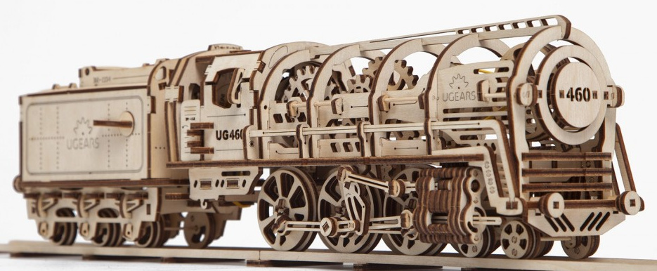 Zlatou érou železnice. Stavebnice parní lokomotivy s tendrem vyrobená z překližky. Tendr má střešní dvířka a nabízí úložný prostor i pro případ, že model bude stát ve vitríně. Mechanika je do detailu propracovaná, vy tak můžete pozorovat pohyb klikového mechanismu dvojkolí modelu. Lokomotiva je zbavena pláště, a lze tak pozorovat i chod soukolí uvnitř. Díky natahovacímu mechanismu je model schopen jízdy. Má funkční převodovku pro volnoběh a zpátečku. Může se pyšnit dalšími mechanickými podrobnostmi, dveřmi kabiny strojvedoucího, sklopným žebříkem, dvířky střešní ventilace, nebo i spřáhlem. Lokomotiva je posazena na krátkém rovném úseku tratě, který lze rozšířit stavebnicí přejezdu. Mezi nabízeným traťovým příslušenstvím naleznete i model nástupiště, s nímž prohloubíte celkový zážitek ze stavby a provozu modelu. Uspořádejte závody s dalšími modely UGEARS! Vybaveno detailním návodem k sestavení.