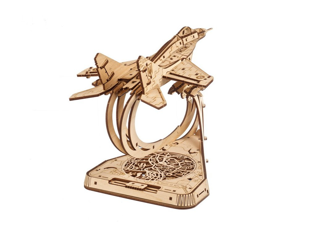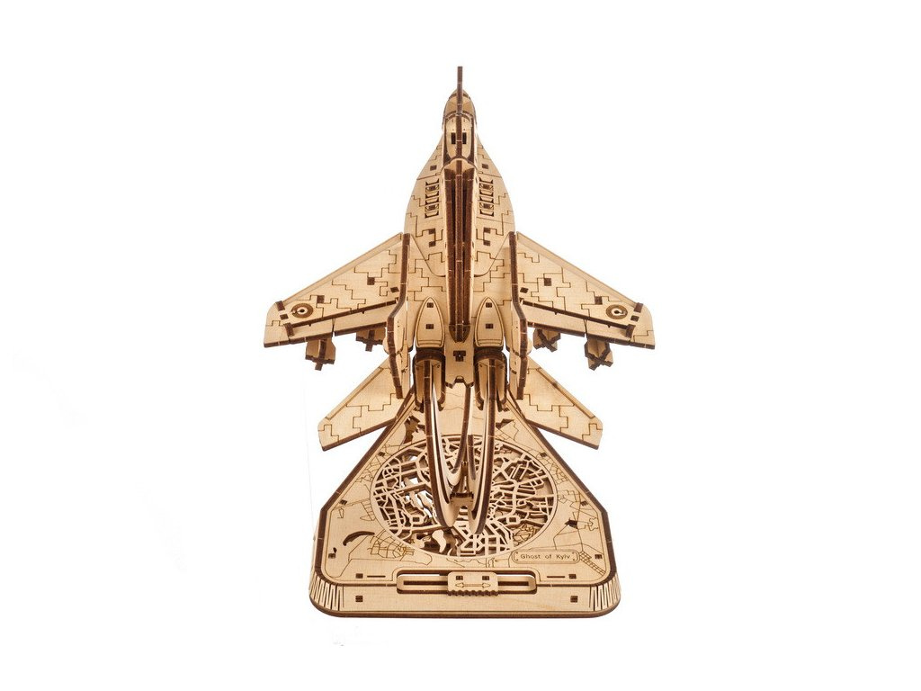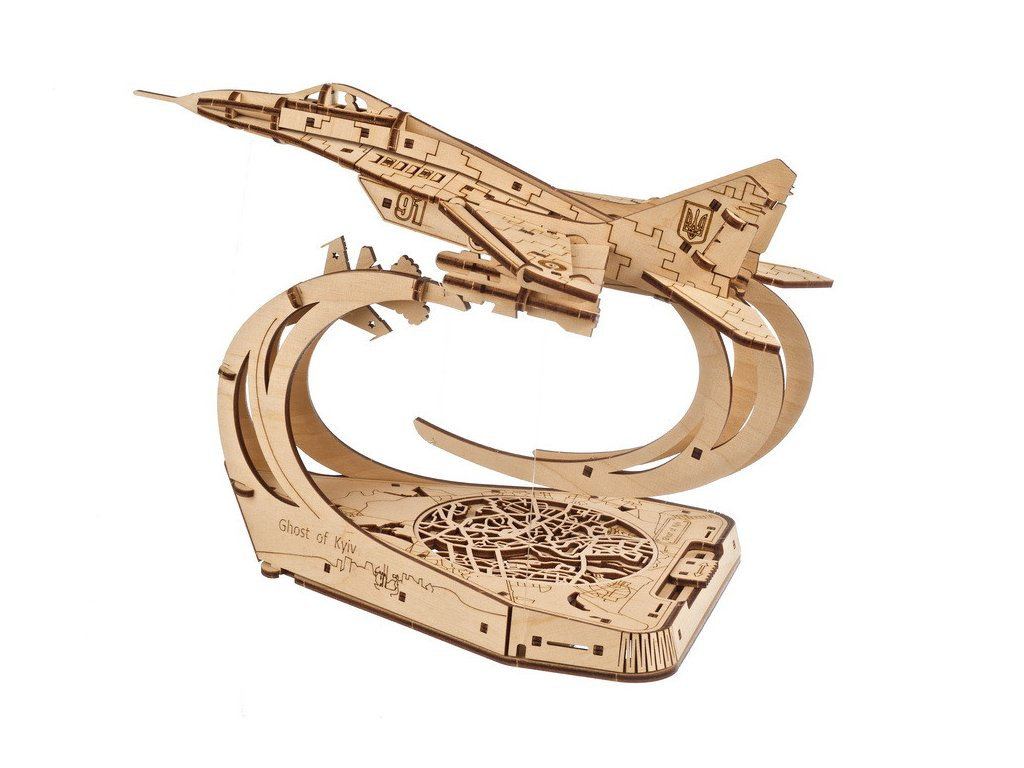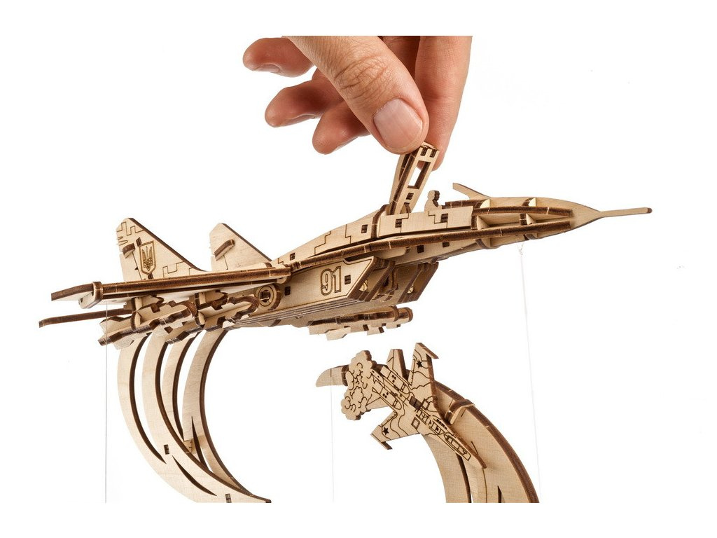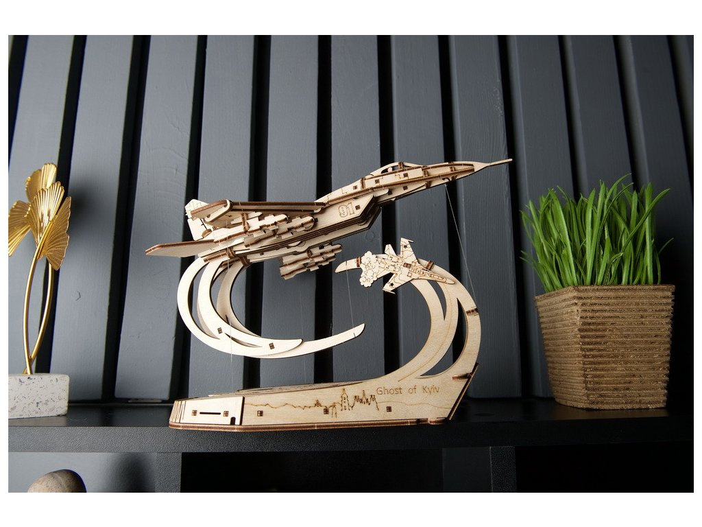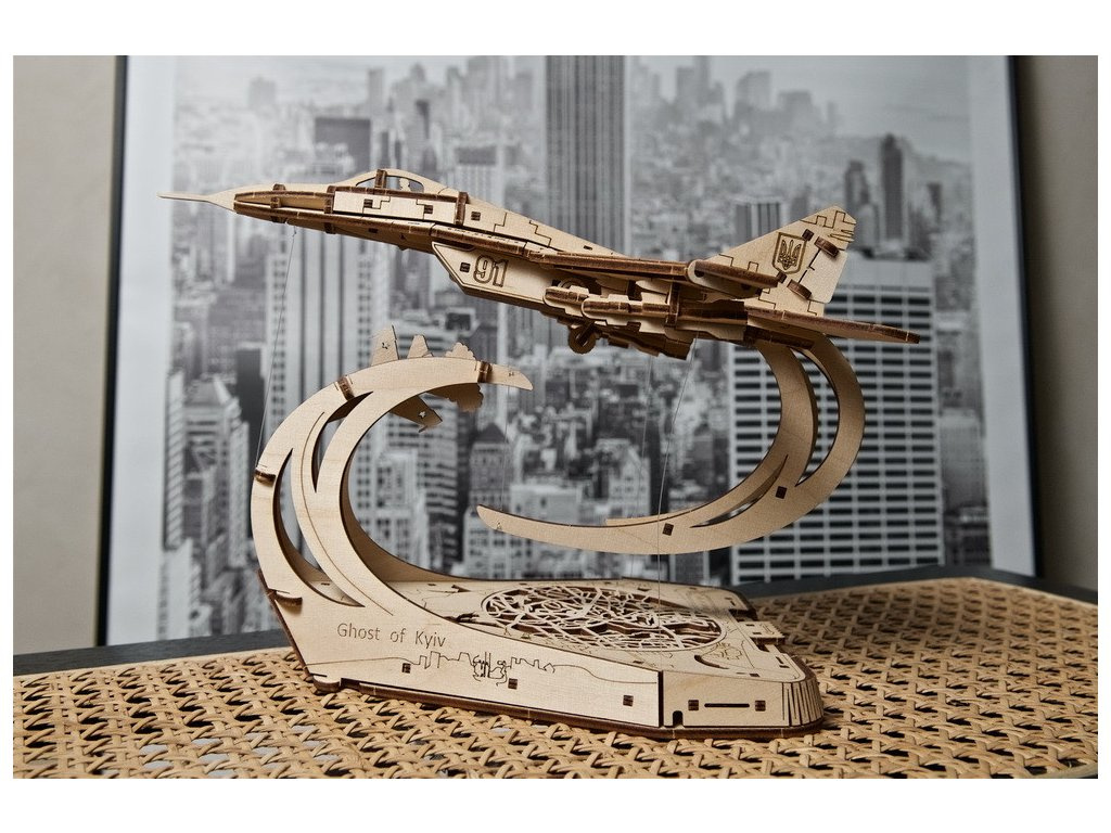 Představte si model, který nejen že zpodobňuje hrdinství, ale sám se stává symbolem odvahy a nezlomnosti. Ugears přináší na trh model stíhačky MiG-29, který v měřítku 1:72 přesně kopíruje legendární letoun "The Ghost of Kyiv". Tento model nejenže zdůrazňuje technickou dokonalost, ale i příběh neohroženého obránce nebe nad Kyjevem. Připomeňte si příběh, který otřásl světem, díky precizně vyřezávanému 3D puzzle. Každý díl tohoto modelu byl navržen s ohledem na detail a autenticitu. Pohyblivá křidélka, vztlakové klapky, zatahovací podvozek a dokonce i odnímatelné střely. Ale co opravdu vystihuje ducha tohoto modelu, je jeho schopnost „vznášet se“ nad stylizovanou mapou Kyjeva pomocí tensegrity, což je revoluční princip, který umožňuje modelu defiálně vznášet se ve vzduchu. Je to kus inženýrského umění, který přináší příběh The Ghost of Kyiv do vašeho domova nebo kanceláře.