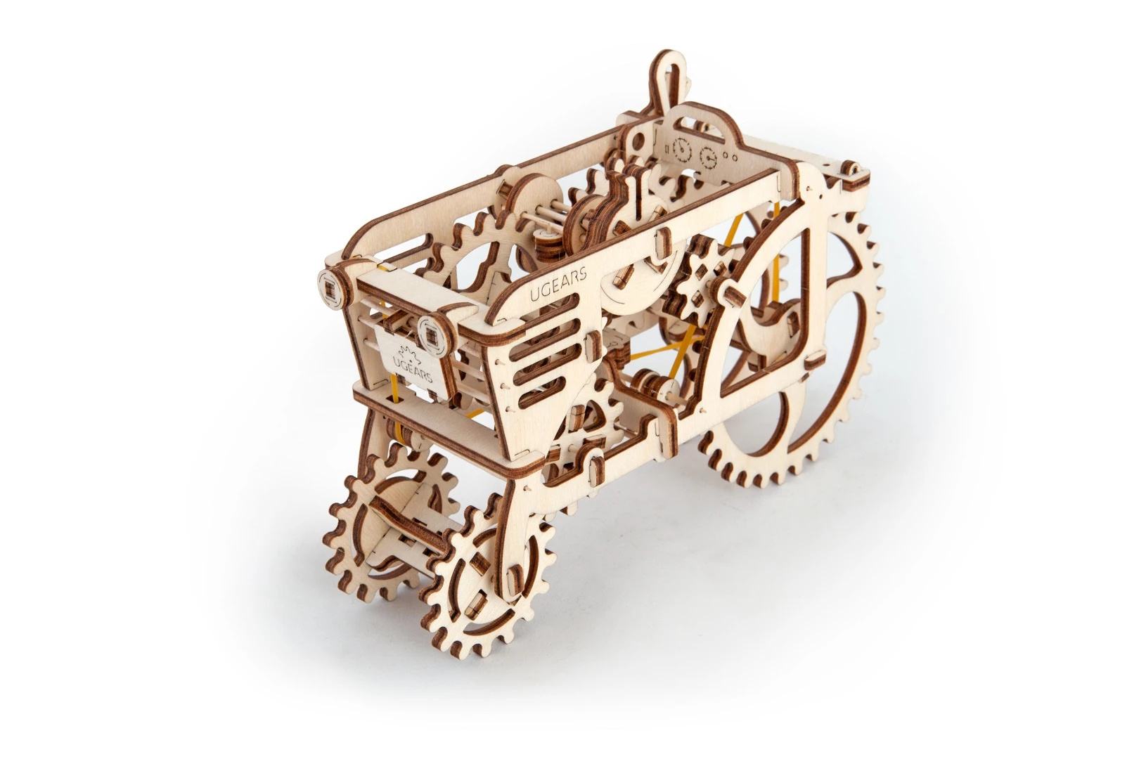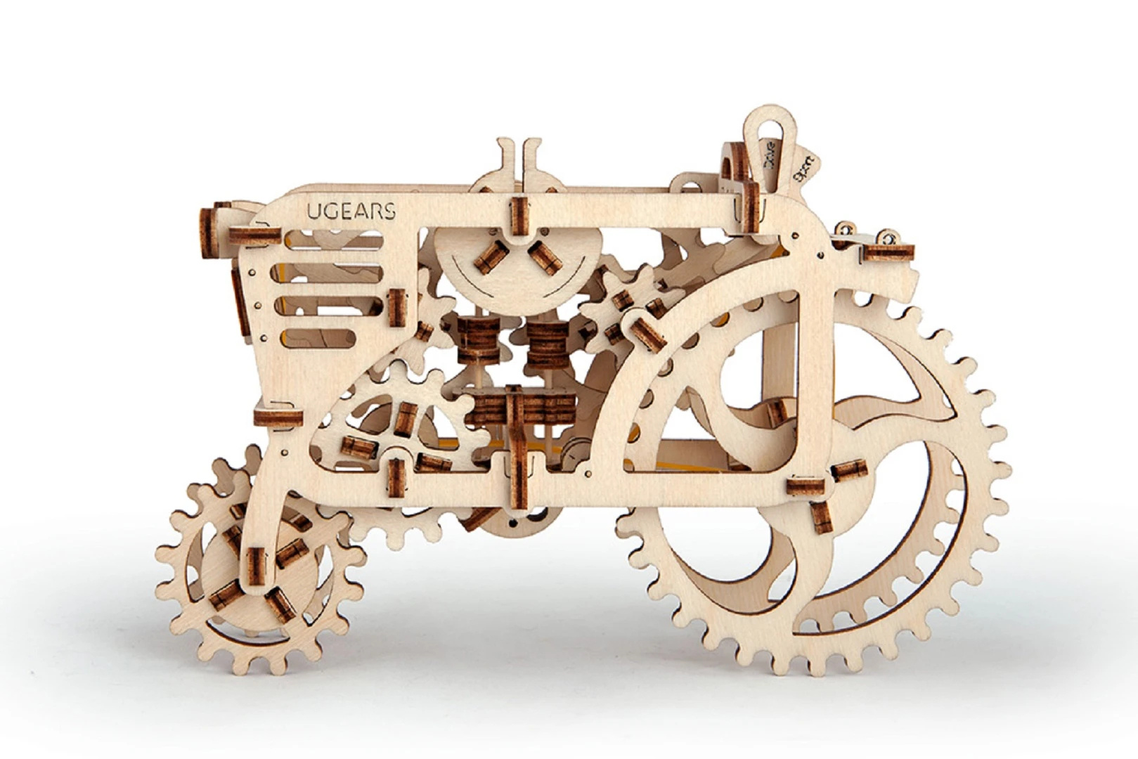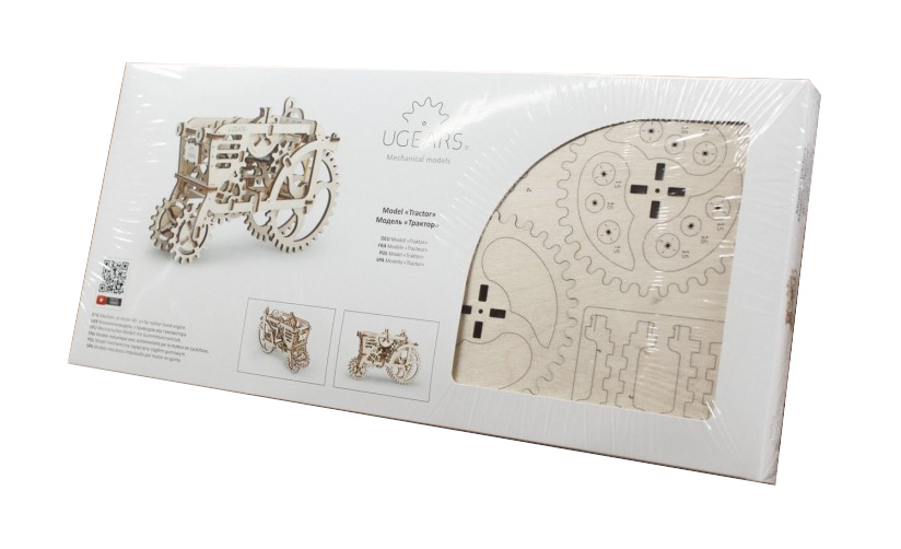 Okuste údiv nad zázraky strojírenství. Stavebnice traktoru vyrobená z překližky. Mechanika je do detailu propracovaná, a vy tak můžete pozorovat pohyb soukolí a táhel motoru. Traktor je díky natahovacímu mechanismu schopen jízdy. Má funkční dvoustupňovou převodovku. Jako příslušenství je k němu nabízena odpovídající vlečka, s níž prohloubíte celkový zážitek ze stavby a provozu modelu. Vybaveno detailním návodem k sestavení.