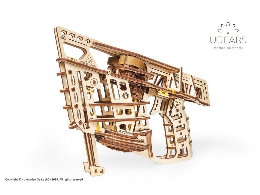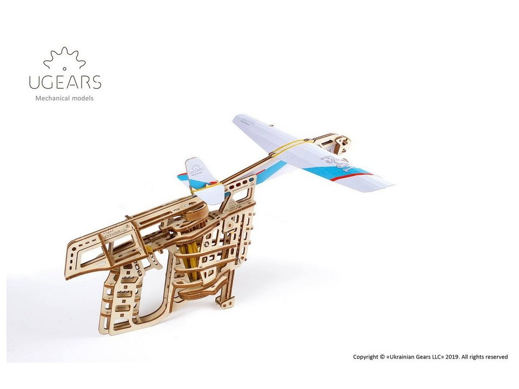 Sestavte si letadlo a k tomu vystřelovací mechanismus v podobě katapultovací pistole. Katapultovací pistole lze také použít k vystřelování vlaštovek z papíru. S tímto 3D mechanickým puzzle poznáte tajemství převodů, gumičkových motorů, koleček a dalších mechanických součástek. Celý model lze sestavit bez pomocí lepidla. Při sestavování poznáte kouzlo funkční mechaniky a zažijete vzrušení, když se model, který pomocí vlastních rukou složíte, sám rozpohybuje. Vhodné pro děti od 14 let. Jistě zaujme, a je vhodným dárkem, i pro dospěláky.