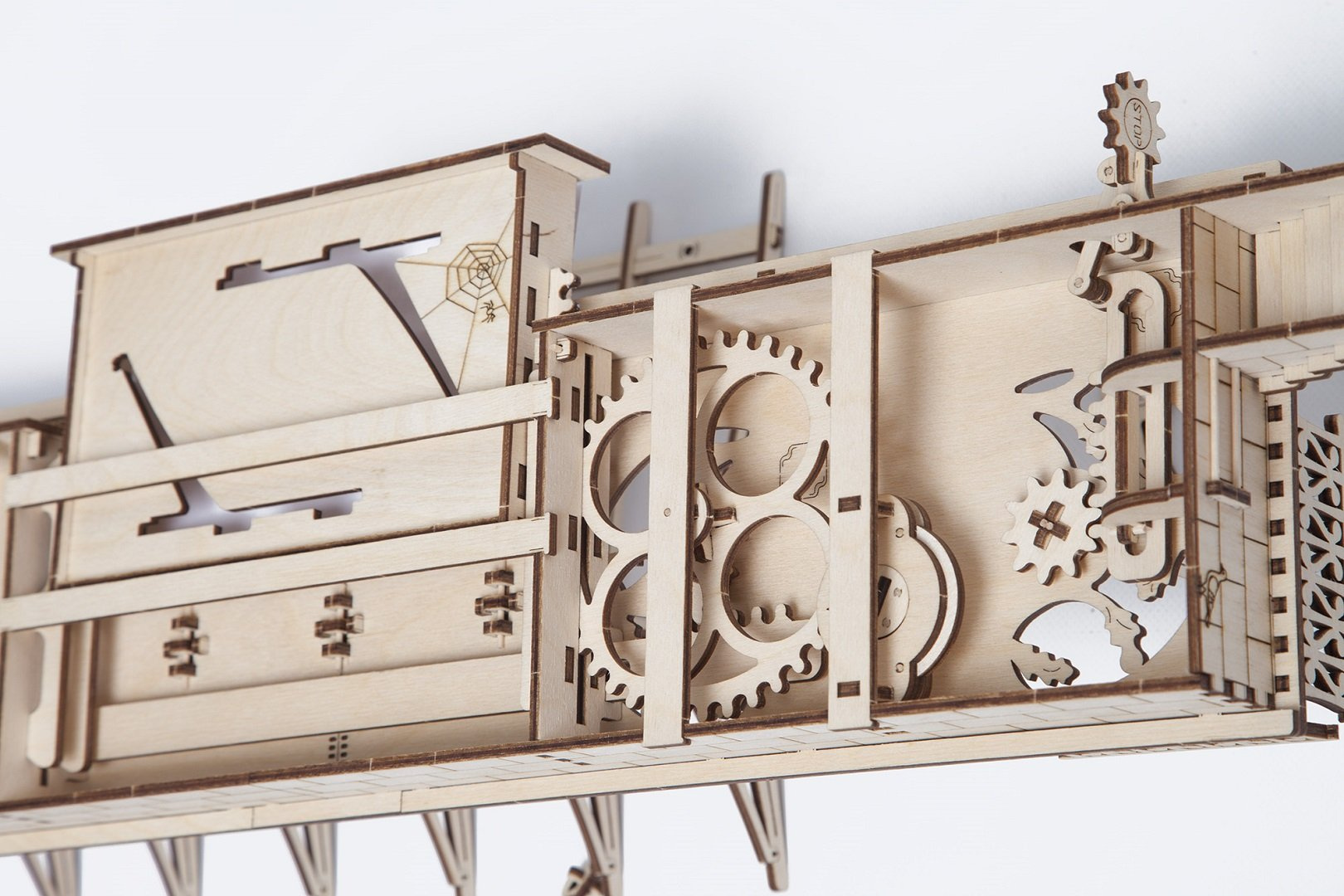 Ukončete nástup, dveře se zavírají. Stavebnice železničního nástupiště vyrobená z překližky. Předlohou modelu byla běžná evropská nástupiště. Mezi četnými detaily najdete lavičku, osvětlení, či hodiny. Nabízí mechanicky ovládané „STOP“ znamení a pod podlahou ukrývá tajnou schránku na jízdenku, vstupenku, či podobnou listinu. Je vybaveno detailním návodem k sestavení.