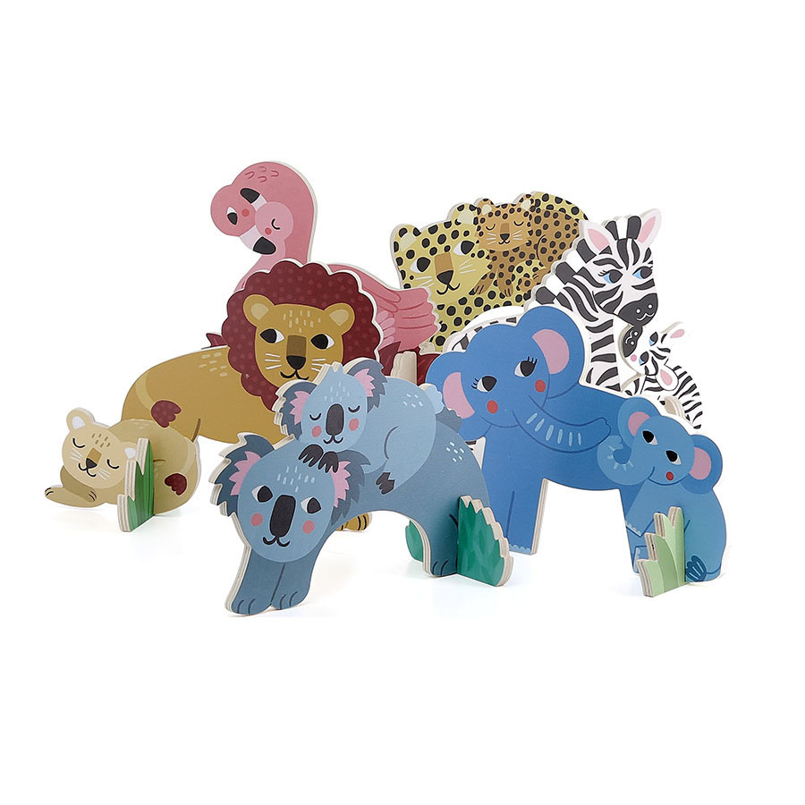 Zapojte celou rodinu a užijte si zábavné chvíle s tradiční dřevěnou hrou kroket, kterou s láskou ilustrovalaa Michelle Carlslund. Šest roztomilých branek ve tvaru lva, koaly, plameňáka, slona, pantera a zebry zobrazuje vždy zvířecí mládě se svou maminkou. Díky dvěma dřevěným paličkám, které skvěle padnou do dětských rukou Vás čekají napínavé chvíle plné zábavy! Hru využijete za pěkného počasí venku a za deštivých a chladných dní doma. Dřevěný kroket je ideální pro rozvoj obratnosti a šikovnosti Vašeho dítěte a také Vás.
