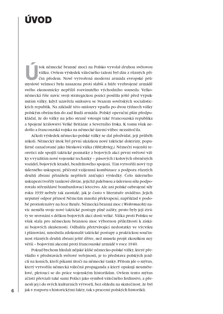 Německý útok na Polsko zahájený 1.září 1939 se stal počátkem druhé světové války. V konfliktu, který vnesl do vojenské terminologie nový výraz "Blitzkrieg" se střetla nově vybudovaná moderní armáda evropské ekonomické velmoci s mnohem menší armádou polskou. Německé průniky do hloubi polské obrany zabezpečovaly rychle postupující tankové divize, jež spolu s nasazením střemhlavých bombardérů Junkers Ju 87 dokázaly během necelého měsíce odpor protivníka rozdrtit. Polské ozbrojené síly nebyly tak zastaralé, jak se velmi často uvádí. Měly například k dispozici více obrněných vozidel než tehdejší armáda americká. Navíc Poláci dokázali své protivníky několikrát zaskočit a německé ztráty byly poměrně vysoké.