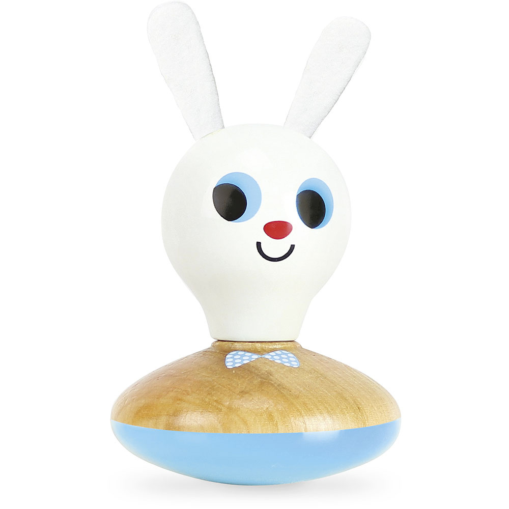 Krásný králíček, který není jen chrastítkem, ale také vstaváčkem a rumba koulí! Pan králíček zaručeně probudí smysly Vašich dětí. Vyrobeno ze dřeva ve Francii.