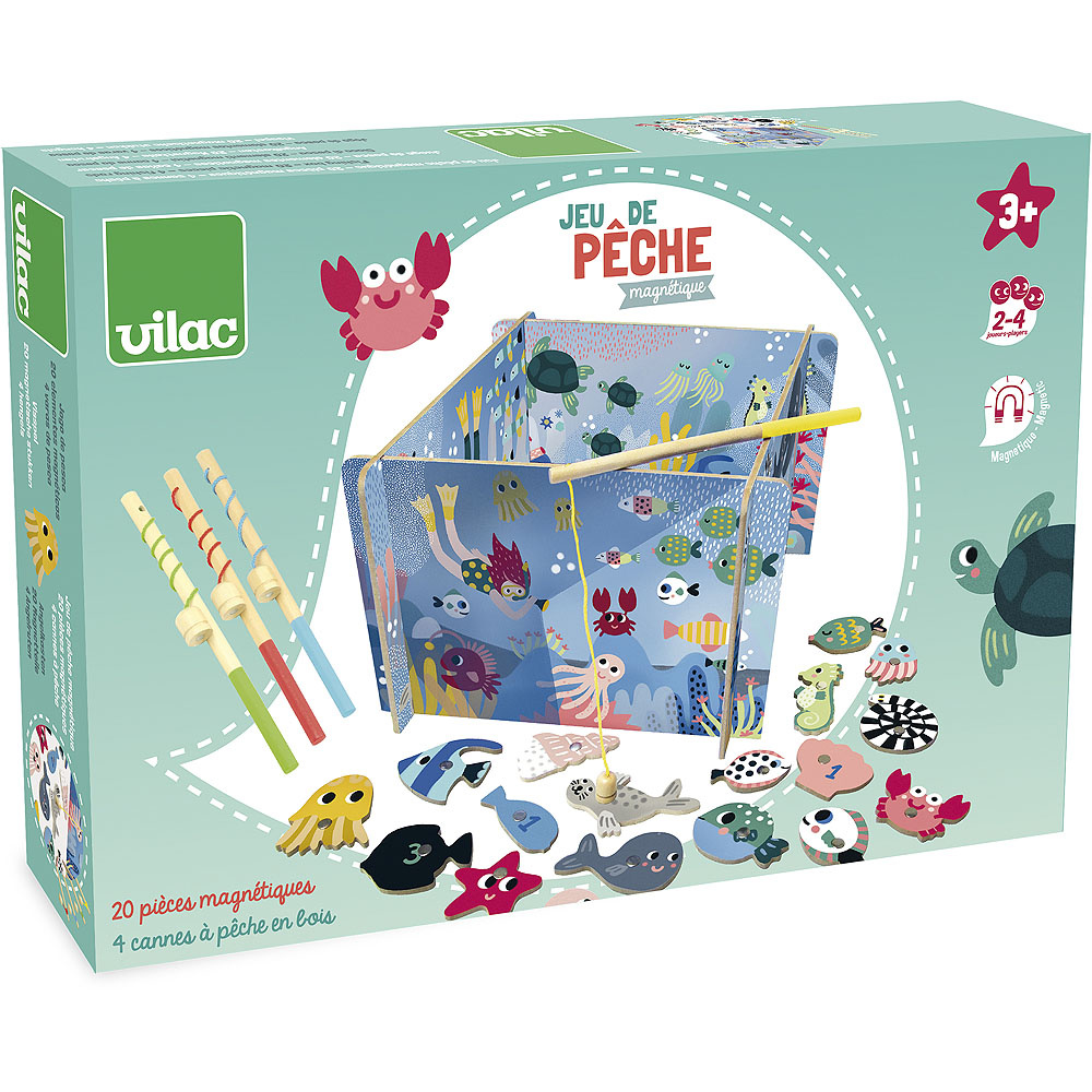 Zábavná hra, kterou milují všechny děti, v provedení pro čtyři hráče, s ilustracemi umělkyně Michelle Carlslund! Magnetické rybaření s 20 dřevěnými herními dílky, s bohatě dekorovanou kartonovou herní plochou.