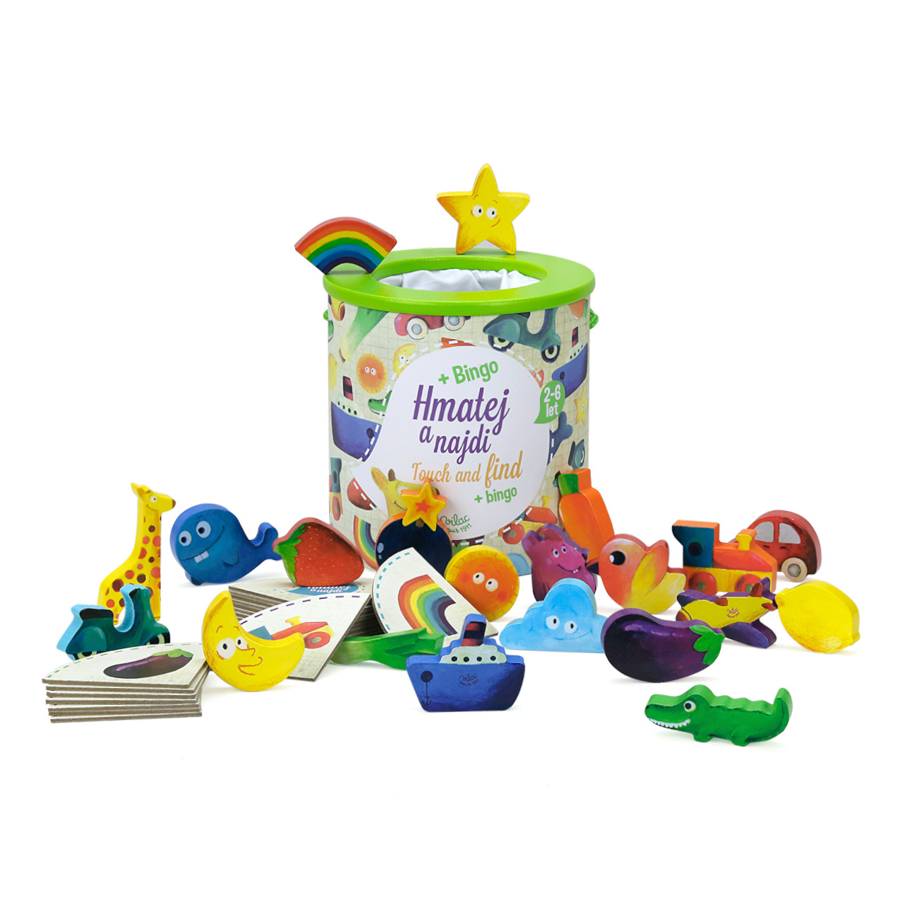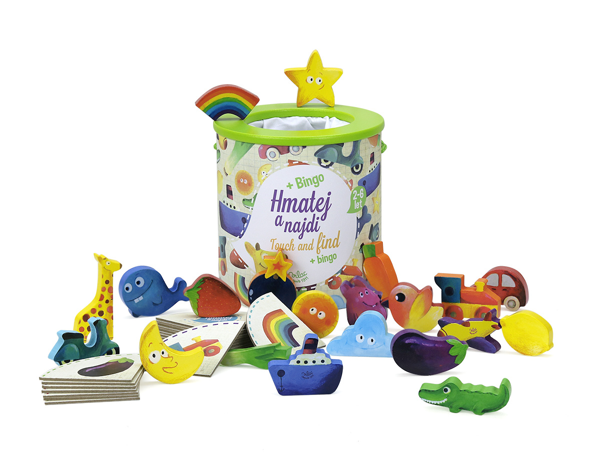 Nepřekonaný bestseller Vilac se originálním způsobem snaží rozvíjet často opomíjený smysl dětí, hmat. Hra je tvořená zejména dřevěnými figurkami ukrytými v kyblíku vybaveném uvnitř jemným látkovým sáčkem. Menší děti mají za úkol po vložení ruky do tuby jen na základě hmatání popsat svými slovy, jaký předmět drží v ruce. Rodiče mohou postup dětem předvést názorným příkladem. Starší děti mohou hrát hru ve formě lota, nebo binga, k těmto hrám jsou v sadě k dispozici obrázkové karty jednotlivých předmětů.