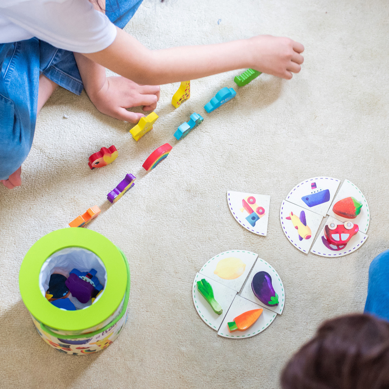 Rozložte 4 karty do čtverce a vytvořte jedno, nebo více hracích polí pro každého hráče. Jeden z hráčů, nebo rodič vytáhne dílek ze sáčku a vyvolá ho. Hráč, který má kartu odpovídající tomuto vyvolanému dílku, si jej vezme a položí na svou kartičku. Vítězí hráč, který jako první zaplní své herní pole!
