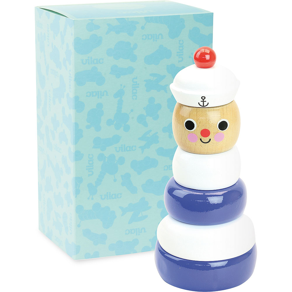 Ano, kapitáne! Velmi dekorativní nasazovačka námořníka pomůže malým dětem s rozvojem jejich motoriky. Navrženo Ingelou P. Arrhenius. Vyrobeno z lakovaného dřeva ve Francii.