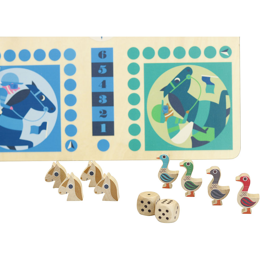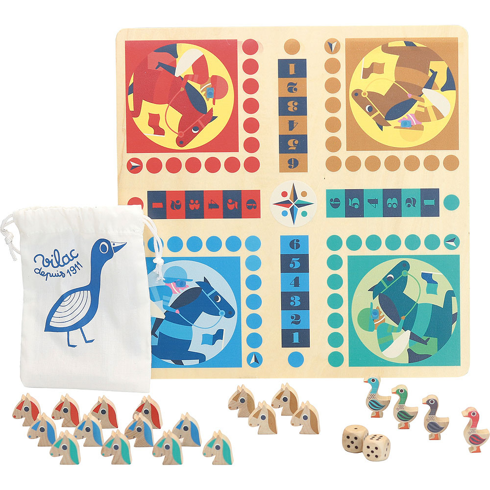 Desková hra 2 v 1, ve které najdete francouzské člověče nezlob se s koňmi a husí hru. Oboustranná herní deska a figurky jsou ilustrovány Ingelou P. Arrhenius. Vhodné od 4 let.