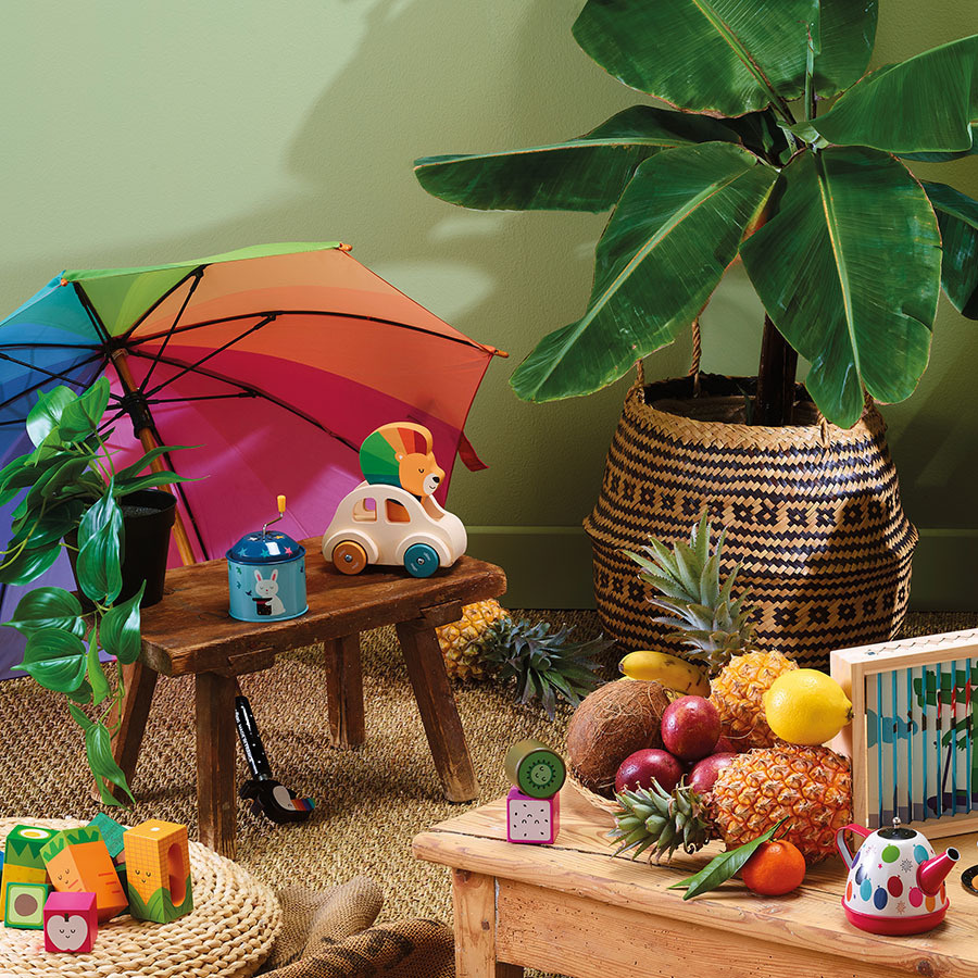 Dřevěné autíčko v přírodní barvě s barevnými koly, ve kterém sedí rozkošný lvíček s barevnou hřívou. Pod lvíčkem je zabudován klakson, proto když dítko zatlačí na hlavu lvíčka, ozve se zatroubení. Tento zvukový detail stimuluje zájem batolat a zároveň jim poskytuje přímou interakci s hračkou. Hračka je dokonale přizpůsobena pro malé ruce a rozvíjí fantazii, jemnou motoriku a koordinaci ruka-oko.