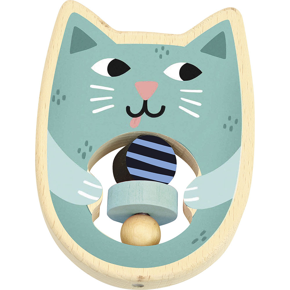 Krásné dřevěné chrastítko s motivem kočičky, navrženo Michelle Carlslund. Uprostřed 3 barevné korálky, které příjemně chrastí. Baleno v textilním pytlíku, je ideálním narozeninovým dárkem. Vyrobeno ve Francii.