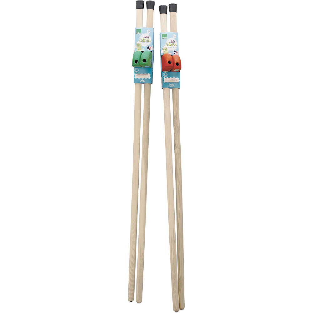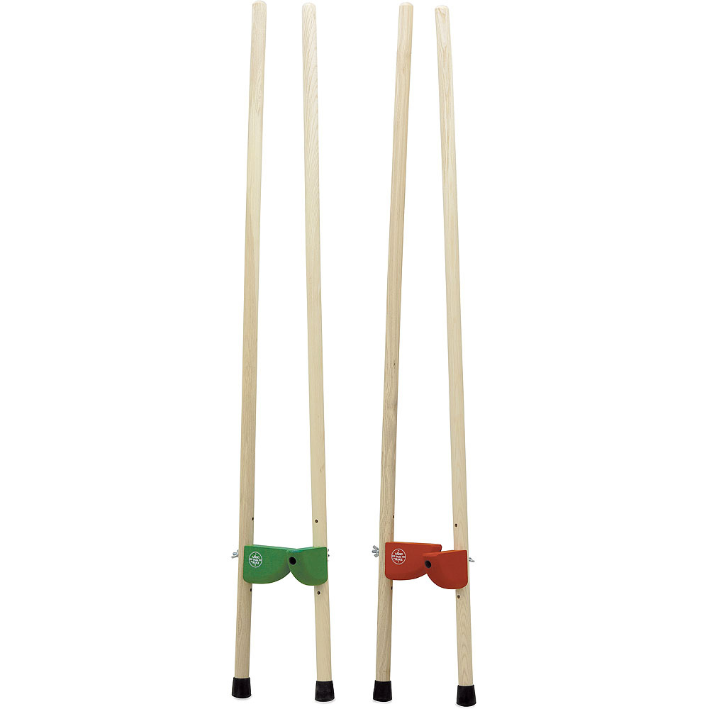 Chůdy z dřevěného masivu s červenými stoupátky, které se dají posunout na 3 různé pozice. Vyrobeno ve Francii.