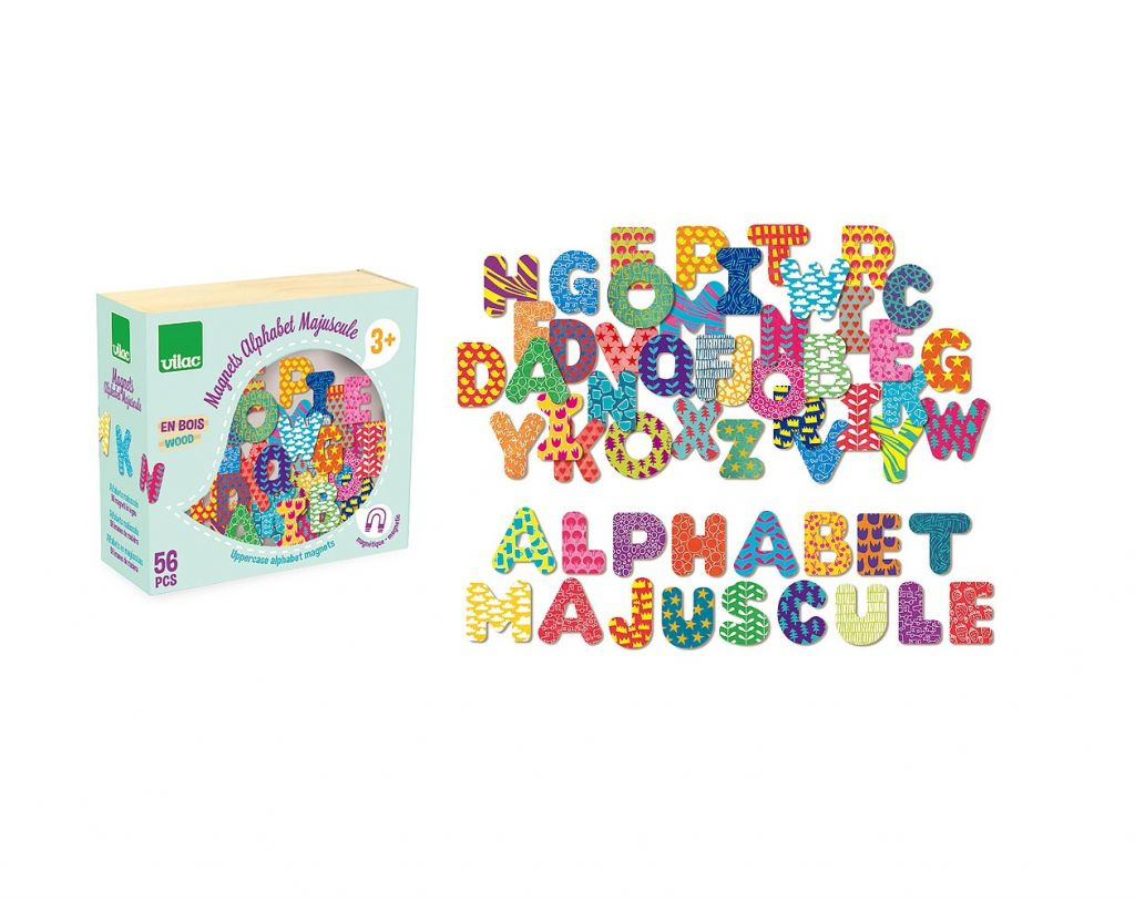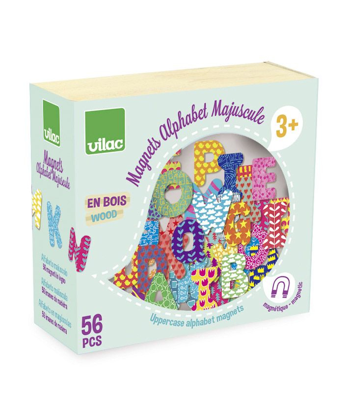 Díky 56 dřevěným magnetkám ve tvaru různobarevných velkých tiskacích písmen mohou děti třeba na ledničce nebo na jakékoli magnetické tabulce sestavovat svá první slova. Hra určená dětem od 3 let rozvíjí poznávací schopnosti i smyslové vnímání a procvičuje jemnou motoriku. Poslouží i k výuce rozlišování barev či ke zdokonalování vyjadřovacích schopností.