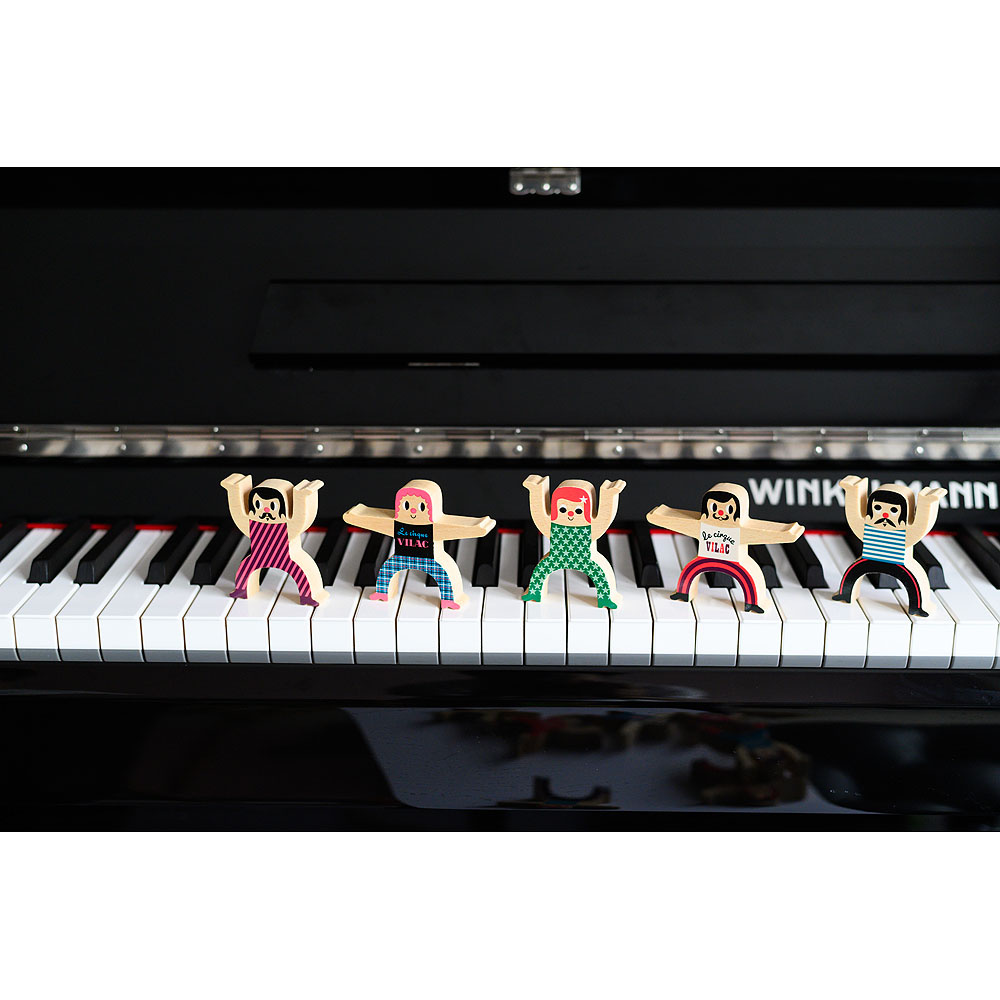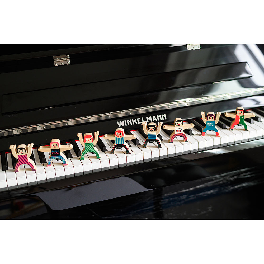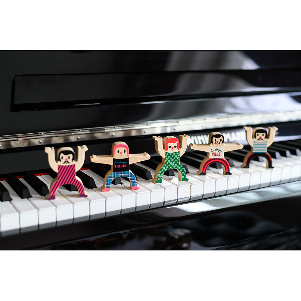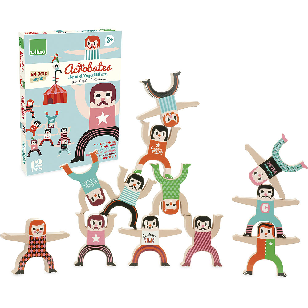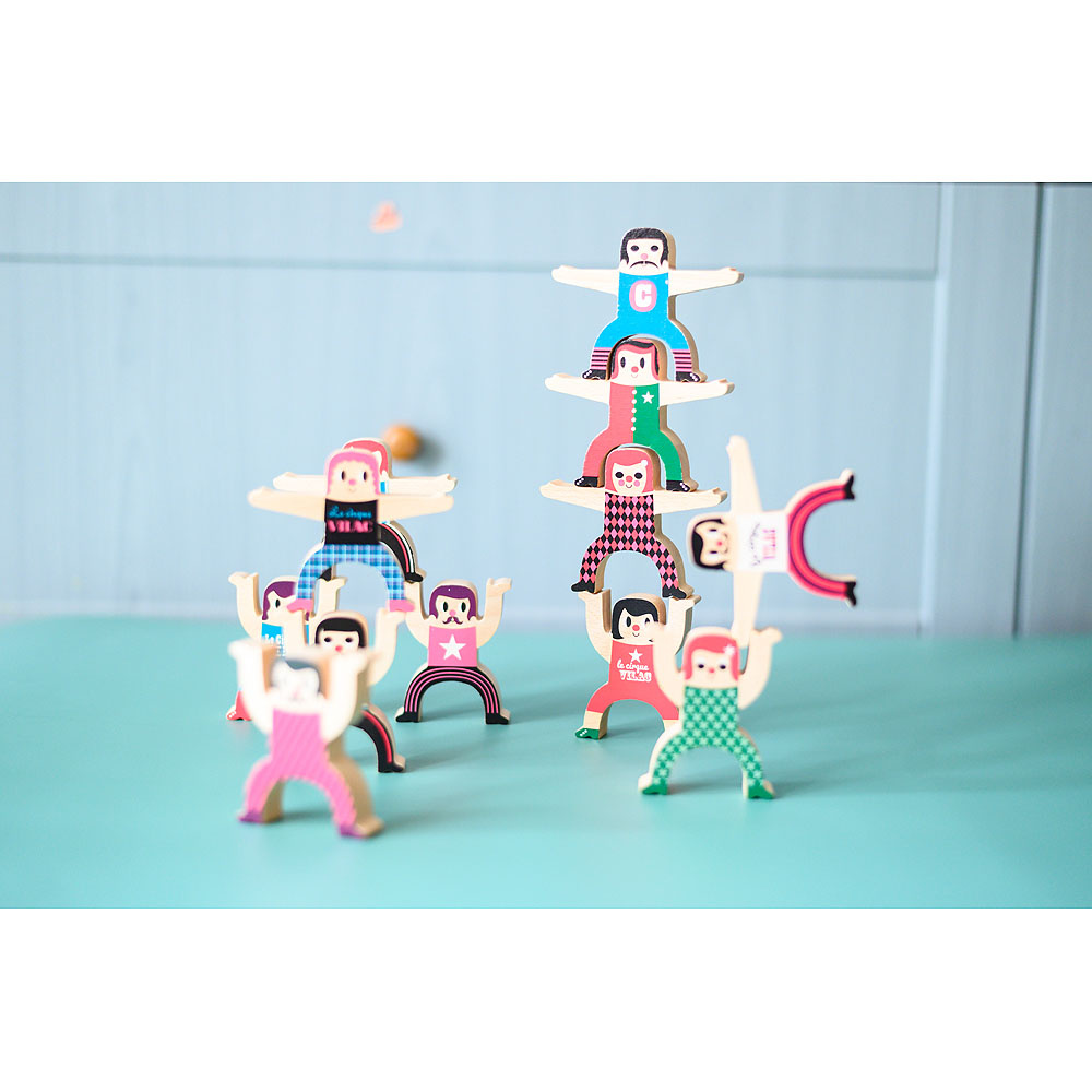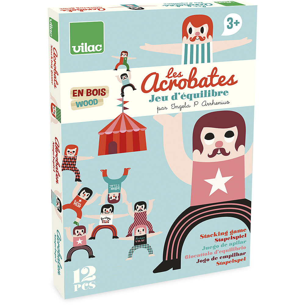 Dvanáct dřevěných figurek akrobatů, s kterými si můžete zahrát balanční hru. Jednoduše skládejte postavičky různě na sebe. Ten, komu akrobati spadnou, prohrál. Ilustrováno Ingelou P. Arrhenius.