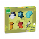 Obsah balení: úložný box a 6 figurek - lev, panda, gorila, slon, zebra a panter.
