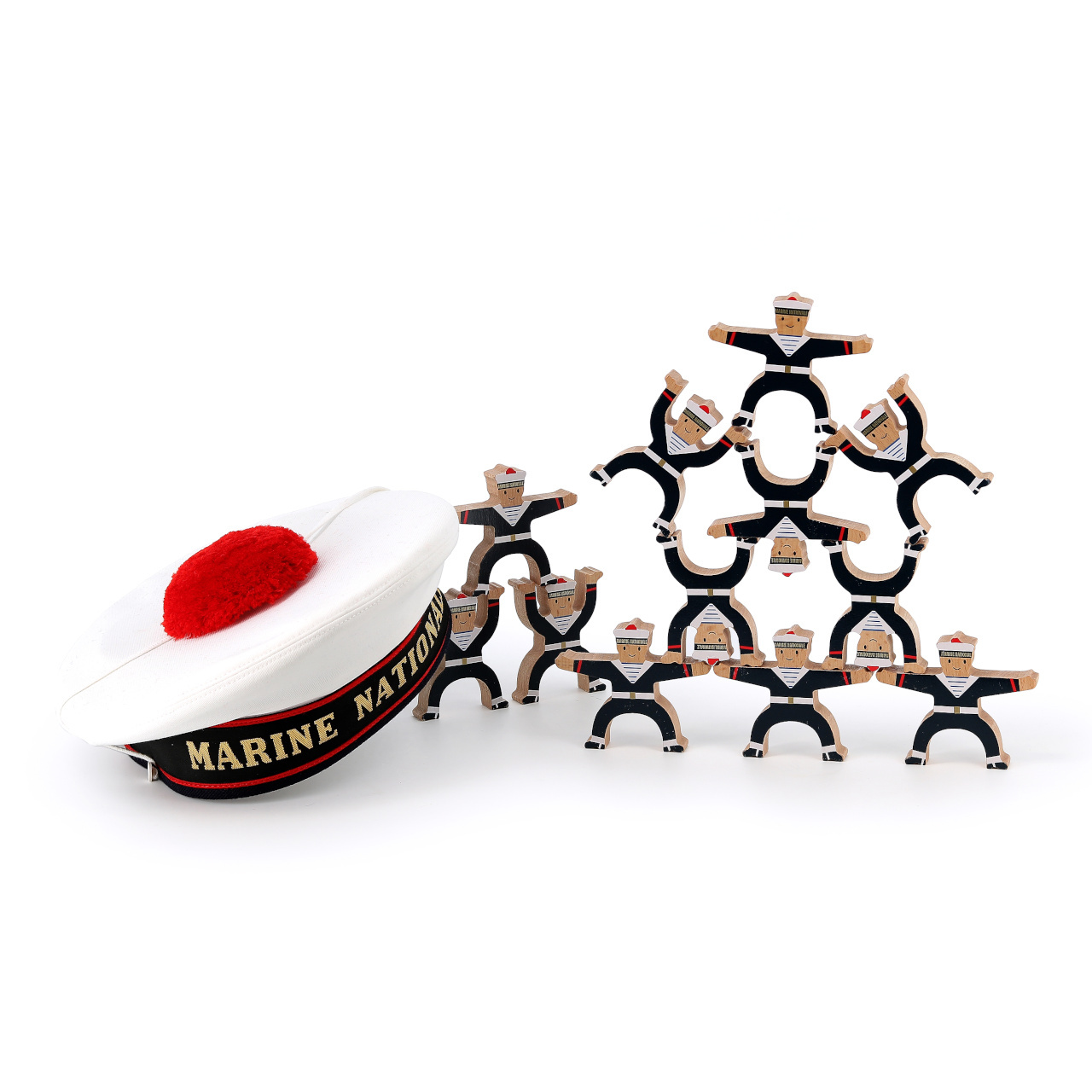 Kdo postaví nejvyšší věž z postaviček námořníků? S figurkami se zabavíte sami i ve společnosti více hráčů, jejich pomocí můžete zdokonalovat jemnou motoriku a soustředění. Jsou vyřezány z odolného masivního dřeva a kouzelně dekorované, snadno se proto stanou ozdobou Vaší poličky, nebo stolku.Vyvinuto ve spolupráci s francouzským námořnictvem. Vyrobeno ve Francii.