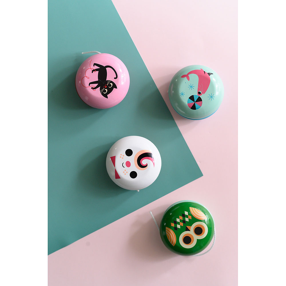 Dřevěné jojo s krásnou ilustrací veselého obličeje Ingely P. Arrhenius. Baleno v bavlněném sáčku. Vyrobeno ve Francii.