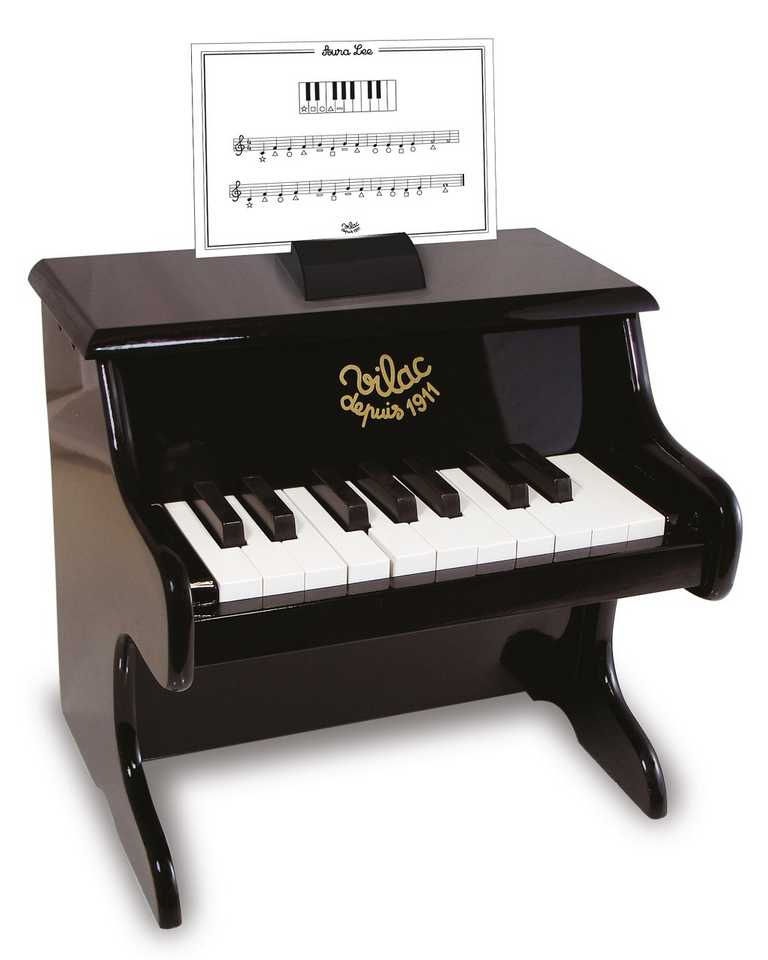 Krásný dřevěný klavír s 18 klávesami. Součástí balení je deset stránek not, děti se tak mohou naučit hrát některé z melodií.