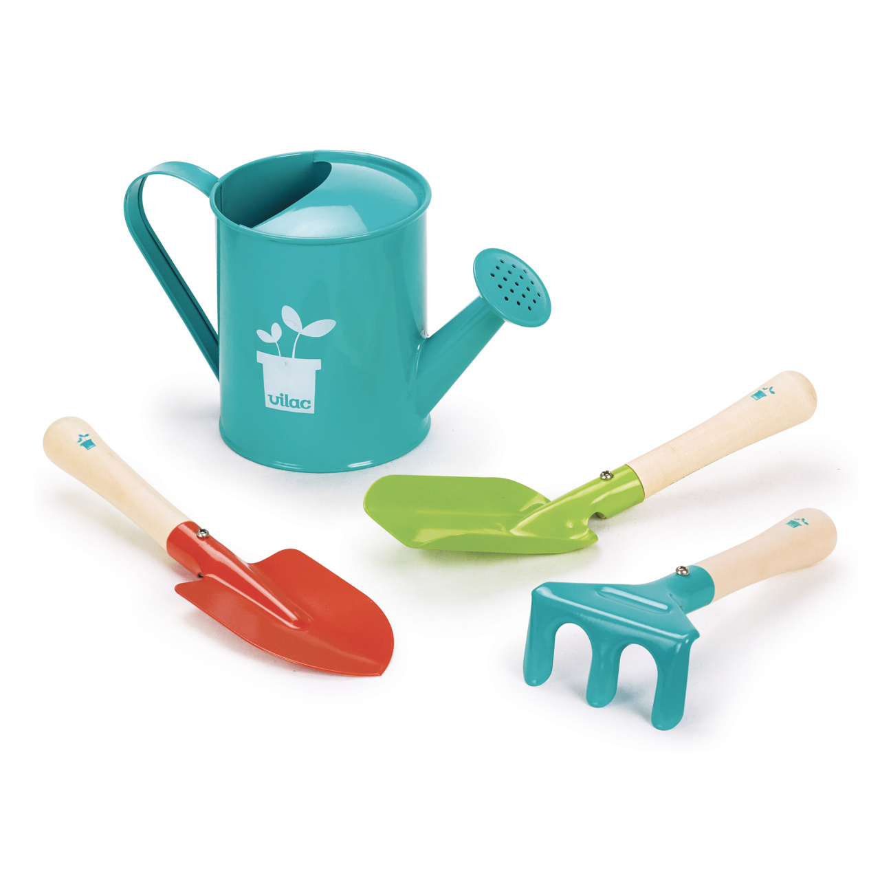 Přenosný set malých zahradníků. Tento velmi kvalitní zahradnický set obsahuje lopatku, hrábě, rýč a konvičku. Taška se dá jednoduše vyprat, nářadí omýt vodou. Nářadí je vyrobeno z masivního dřeva a kovu, velikostně tak akorát pro dětské ruce. Pojďme na zahradu!