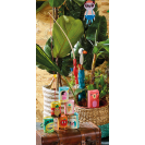 Pojďme si hrát na Indiány. Krabice se při rozložení stává terčem pro střílení, balení obsahuje dřevěný luk a 3 šípy s barevnými přísavkami. Vyrobeno ve Francii.
