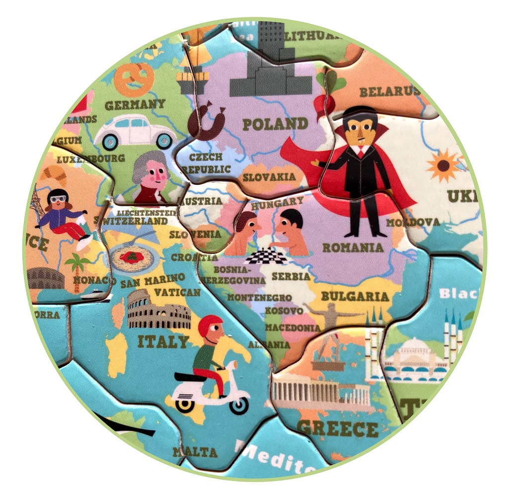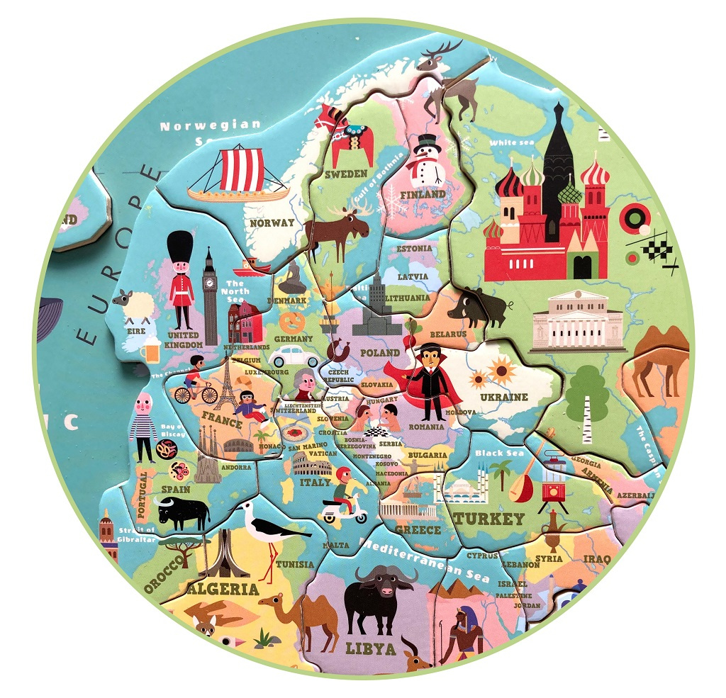Joseph Kessel napsal: „Velké cesty jsou úžasné v tom, že jejich kouzlo začíná už před samotným odjezdem. Otevíráme atlasy, sníme na mapách. Zopakujeme nádherná jména neznámých měst“. Ingela P. Arrhenius navrhla s talentem tuto dřevěnou magnetickou mapu, takže učení geografie je pozvánkou na cestování ...