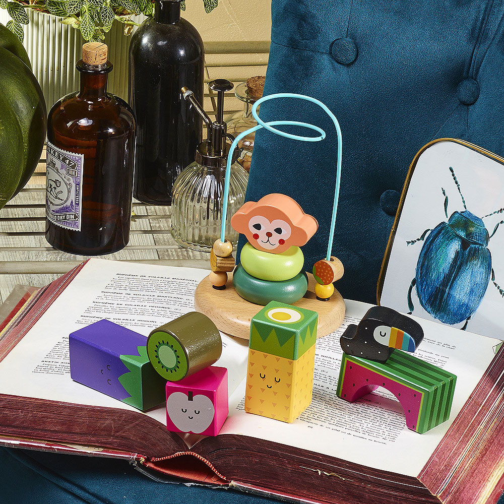 Veselý barevný kovový labyrint s stohovací skládačkou ve tvaru opičky zaujme na dlouhé hodiny a stane se také ozdobou v pokojíčku. Edukativní hračka, s kterou si nejmenší děti vyzkouší první skládačku a procvičí si jemnou motoriku. Ilustrováno Michelle Carlslund.