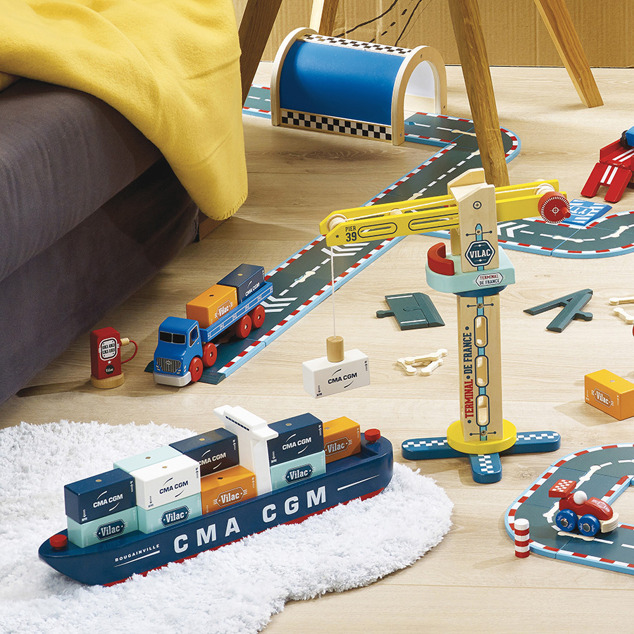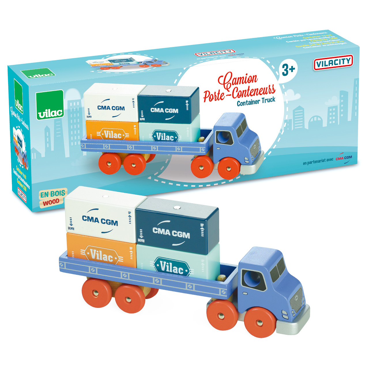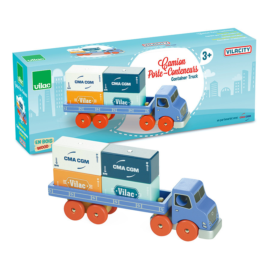 Dřevěný tahač s přívěsem a magneticky spojenými kontejnery, vyrobený ve spolupráci s čelní fracouzskou přepravní společnosti CMA CGM. Je součástí Vilacity kolekce a je se všemi jejími součástmi plně kompatibilní, další samostatná rozšíření přinesou variabilitu a prohloubí zážitek ze hry.