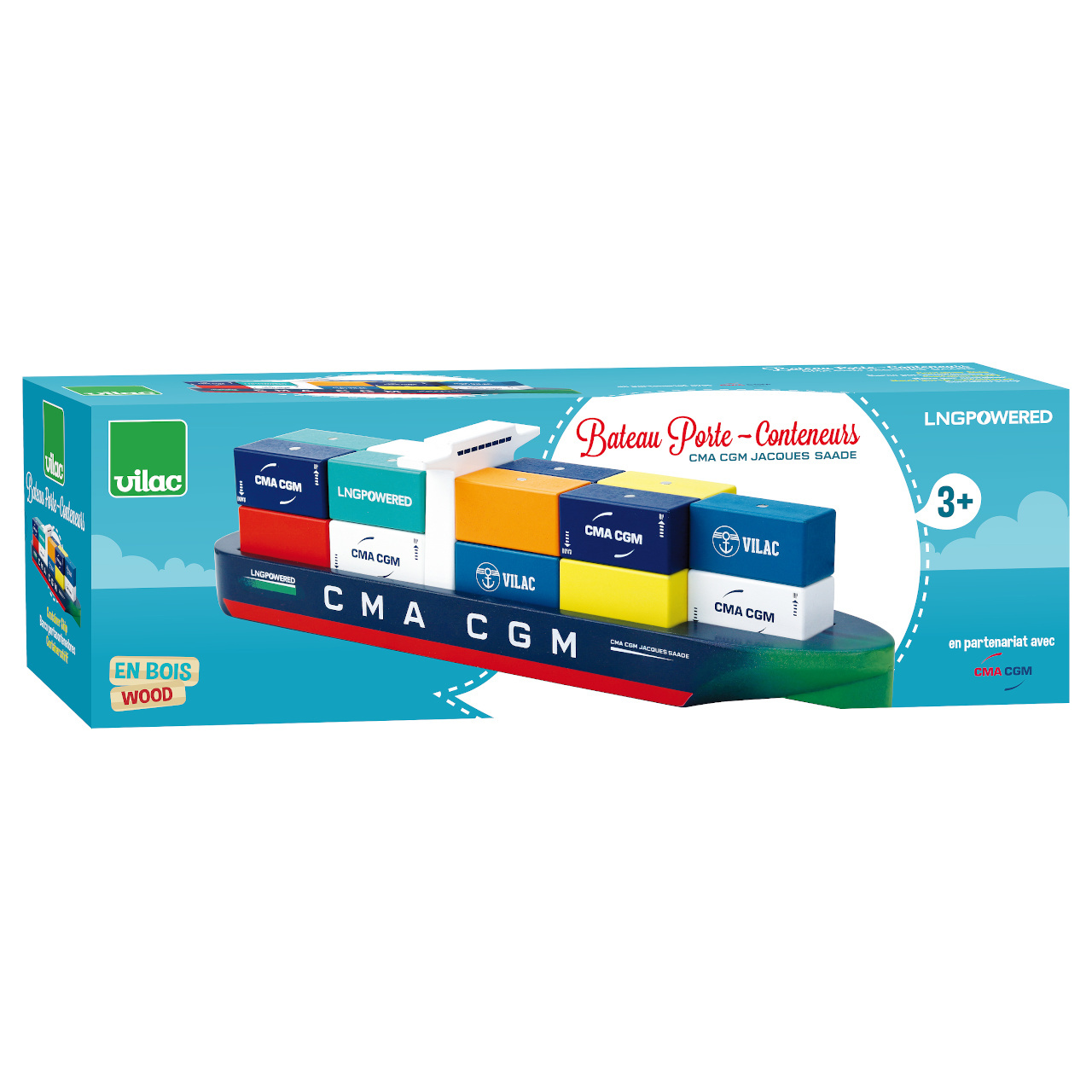 Barevná dřevěná nákladní loď s magnetickými kontejnery je replikou lodi Jacques Saadé, první lodě využívající k pohonu kapalný zemní plyn (LNG). Hračka byla vyrobena ve spolupráci s čelní francouzskou přepravní společnosti CMA CGM. Je součástí Vilacity kolekce a je se všemi jejími součástmi plně kompatibilní, další samostatná rozšíření přinesou variabilitu a prohloubí zážitek ze hry.