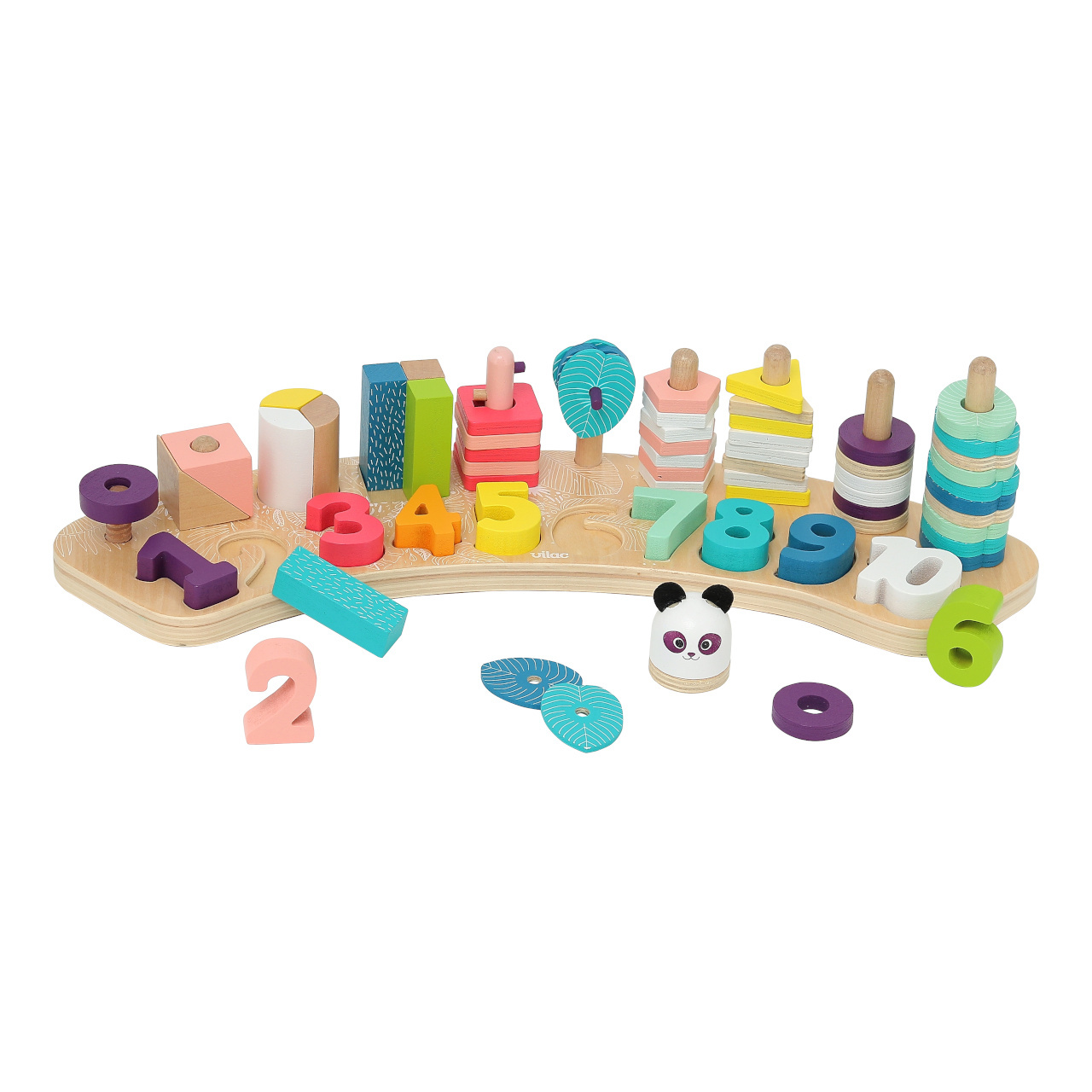 Pomocí jednoduché skládačky mohou děti poznávat čísla a jejich význam utvářením spojitostí mezi zrakem a motorikou. Na jejím návrhu se podíleli odborníci a je vytvořena tak, aby děti jednotlivé vztahy mohly objevovat přirozeně a samostatně v souladu s praxí výukových metod Montessori. Třídění rozmanitých, atraktivních barev, vzorů a tvarů pomáhá dětem rozvíjet soustředění a celou škálu poznávacích dovedností. Pečlivě opracované, pevné a odolné dřevo, z něhož je hračka vyrobena, při hře jemně rozvíjí a stimuluje hmat.
