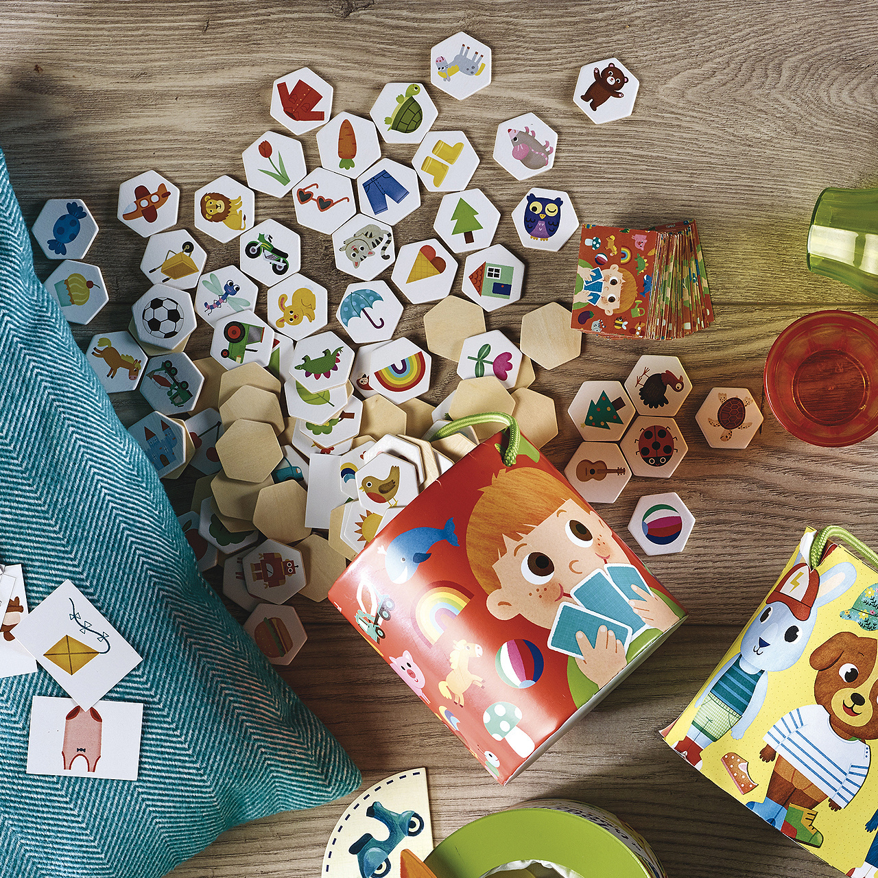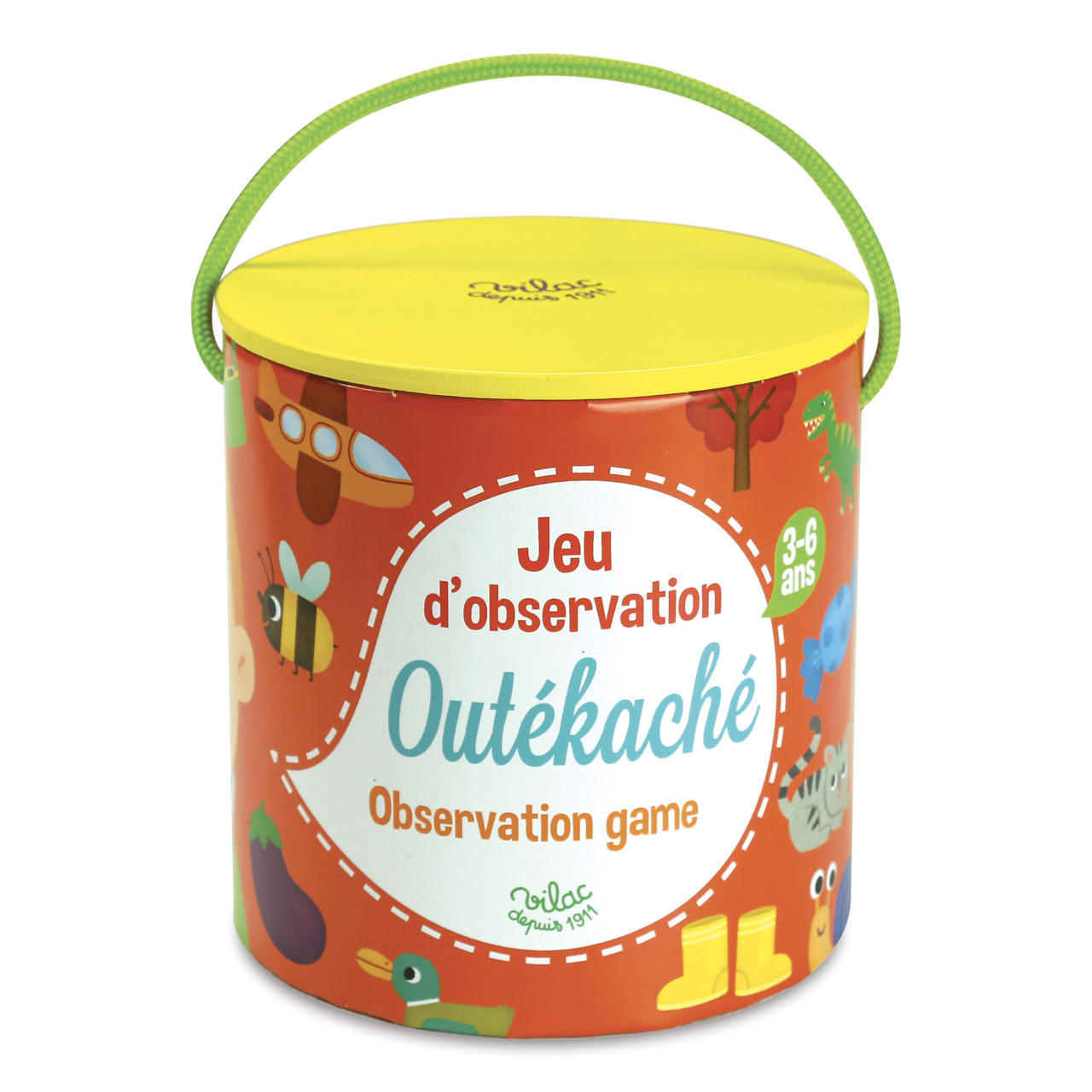 Prověřte postřeh Vašich dětí! Kdo mezi rozloženými dílky dokáže jako první najít obrázek shodný s vyobrazením na kartičce? Hráči přitom musí dát bedlivý pozor, v záplavě obrázků se totiž ukrývají i chytáky! Herní dílky jsou pevné a odolné, vyrobené ze dřeva. Dodáváno v praktickém a atraktivně dekorovaném kbelíku s dřevěným víkem.
