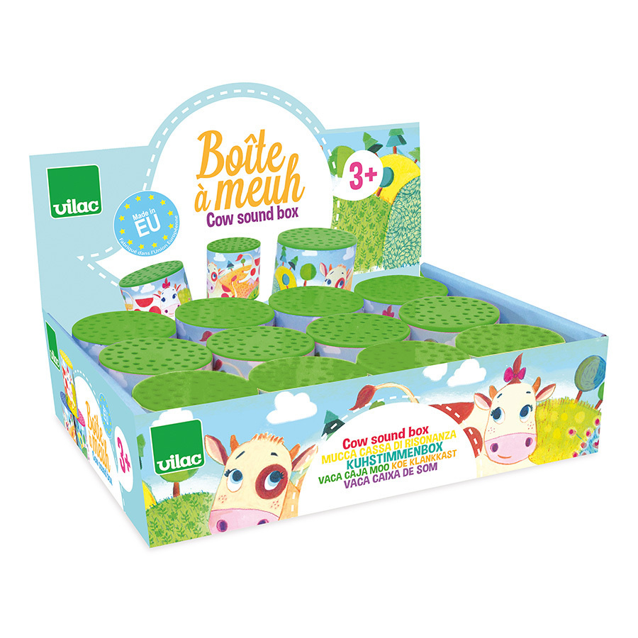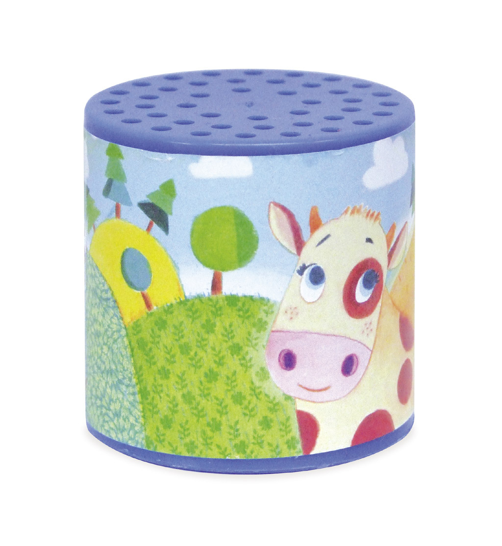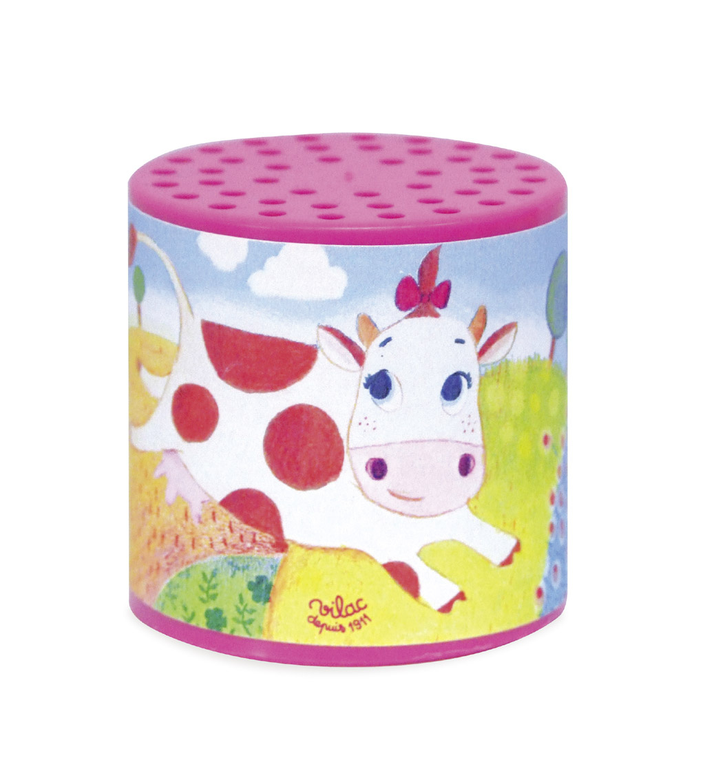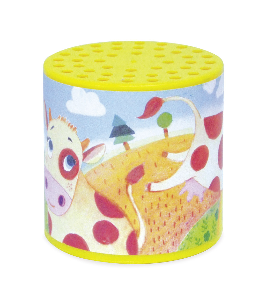 Pes dělá haf haf a kráva dělá...? Otočte tuto krásnou plechovku a zjistěte to! Vyrobeno v Evropě.
