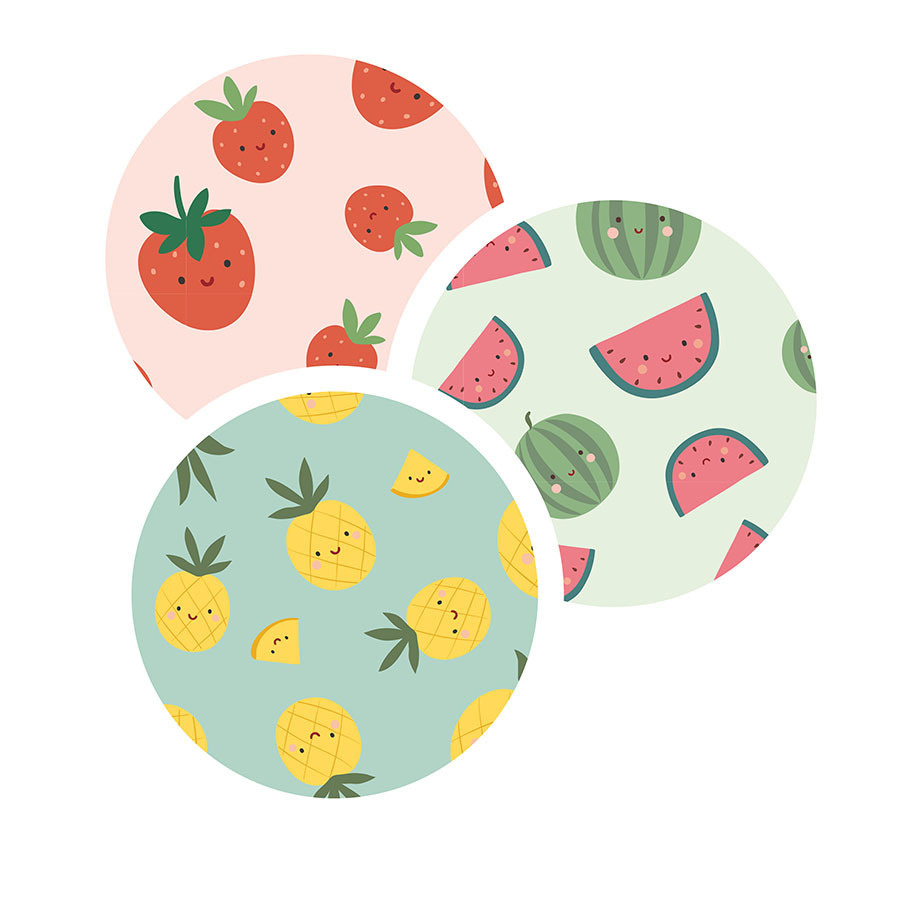Sada 3 kartonových kufříků, které se dají vložit jeden do druhého, s ilustracemi šťavnatého ovoce - vodního melounu, ananasu a jahod designérky Sarah Betz podněcují představivost a pomáhají rozvíjet jemnou motoriku. Jsou praktické pro ukládání a přepravu hraček a díky nápaditému designu se stanou pěknou dekorací dětského pokoje nebo herny. Stanou se také nezbytným doplňkem při hrách na cestování anebo pro třídění a uspořádání hraček v pokojíčku.