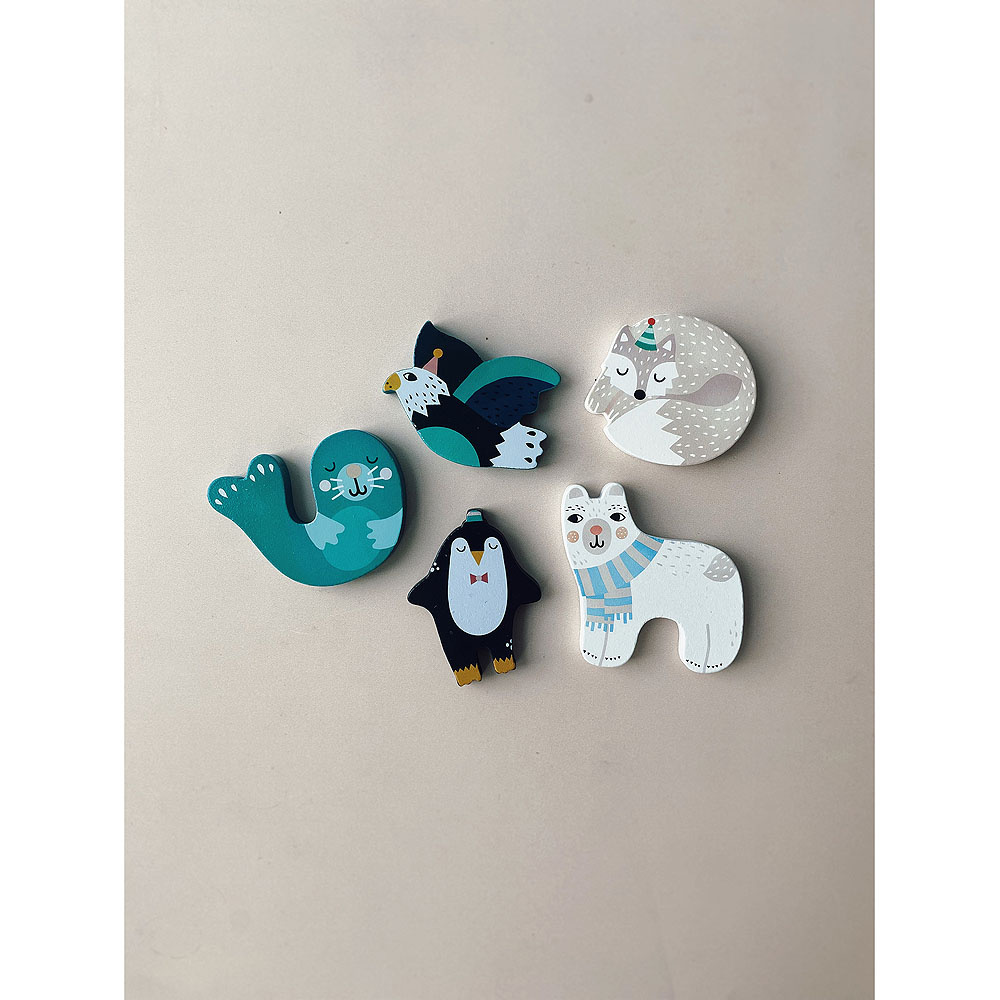 Pěkná senzorická vkládačka pro děti, plně dřevěná. Když děti z rámečku vyjmou dílek, objeví pod ním určitou látku, která má pod každým dílkem zvířete jinou texturu. Ilustrováno Michelle Carlslund.