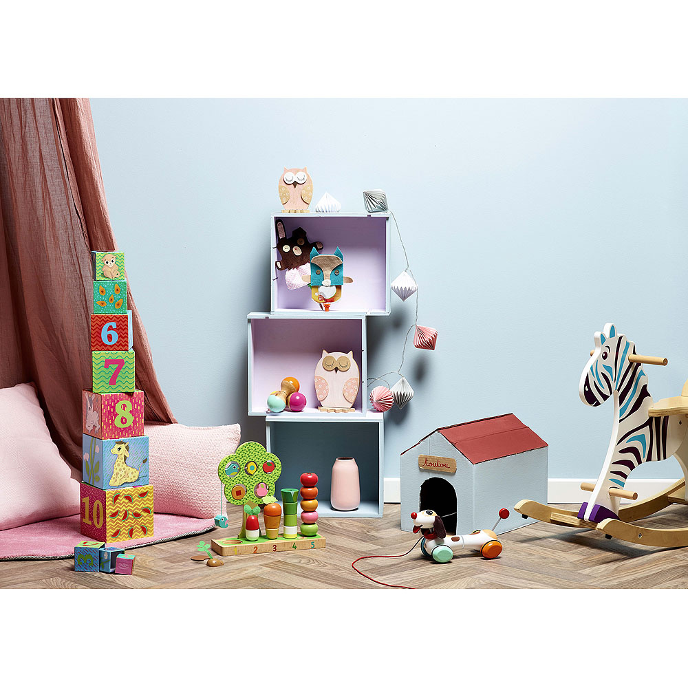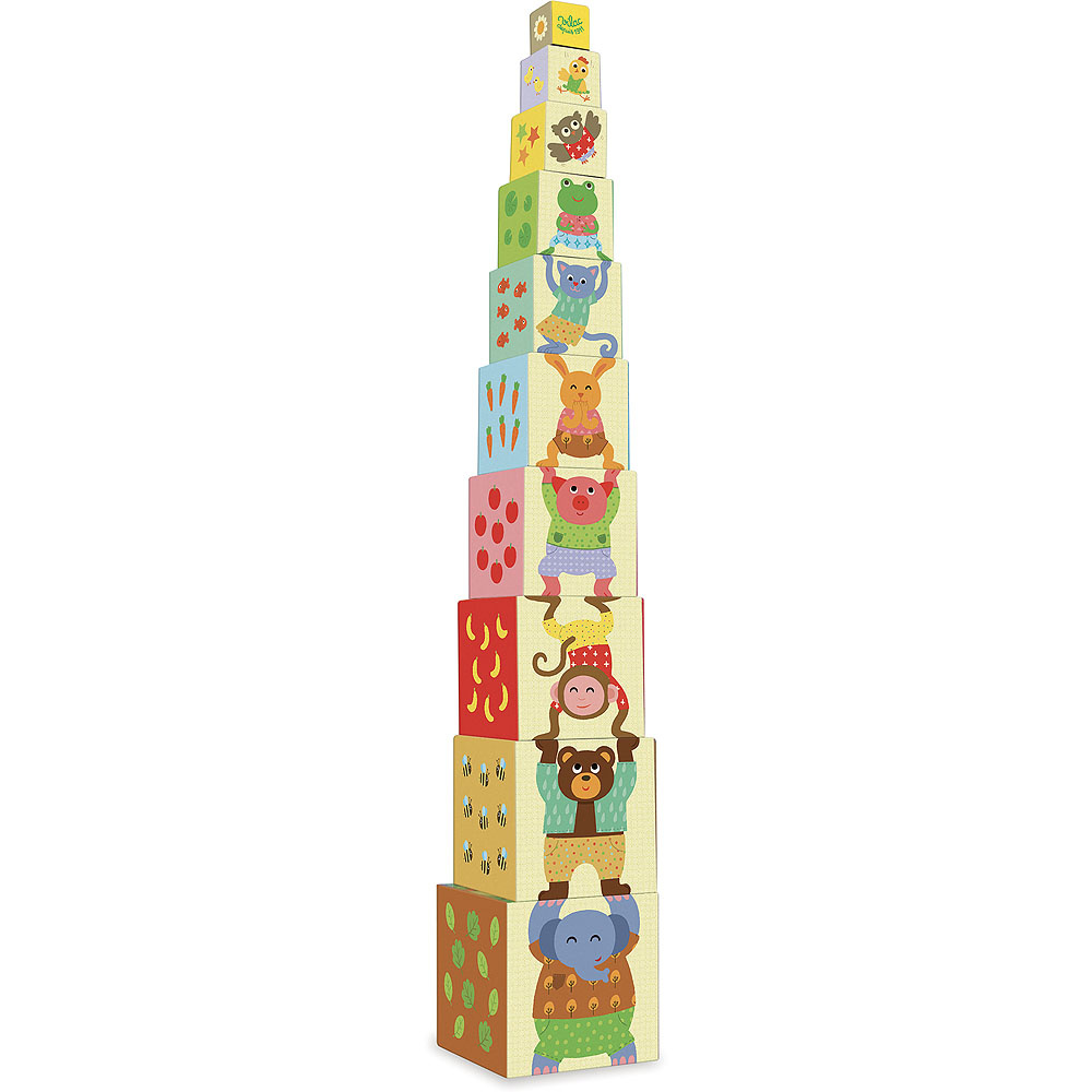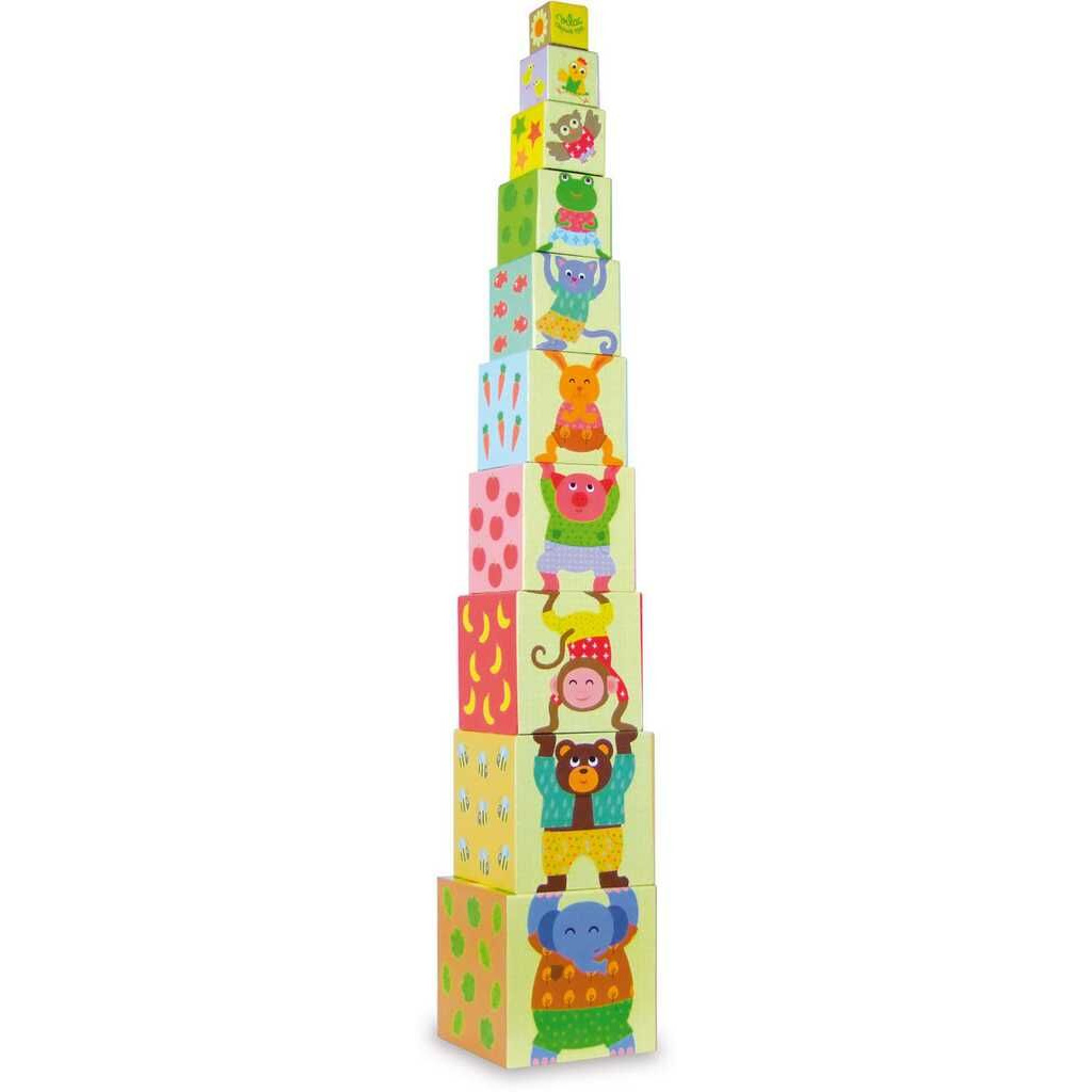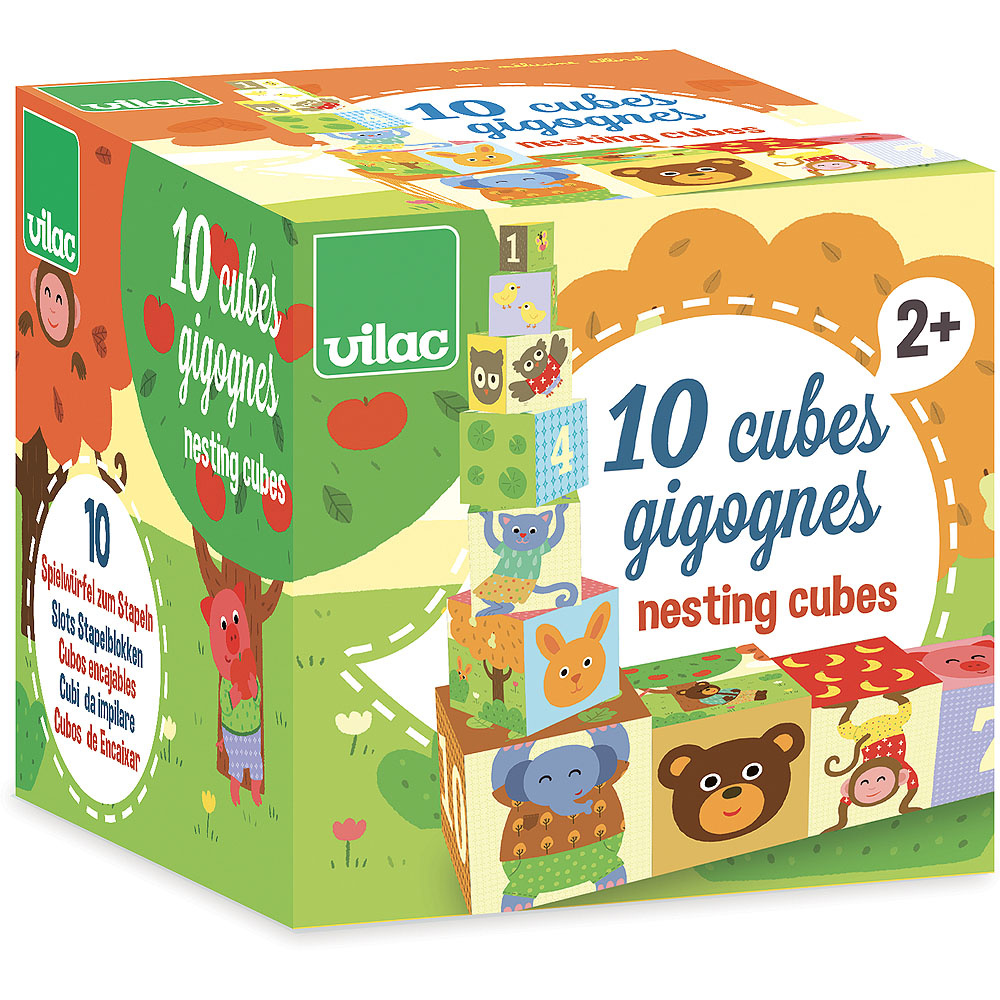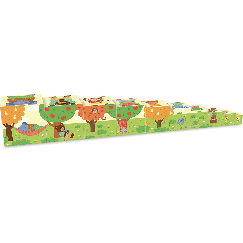 Deset kartonových skládacích kostek s krásnými ilustracemi zvířat. Děti se při hraní naučí jak skládat kostky, tak rozpoznávat zvířata, barvy a počty. Rozvíjí koordinaci zraku a rukou, a tím celkovou zručnost dětí.
