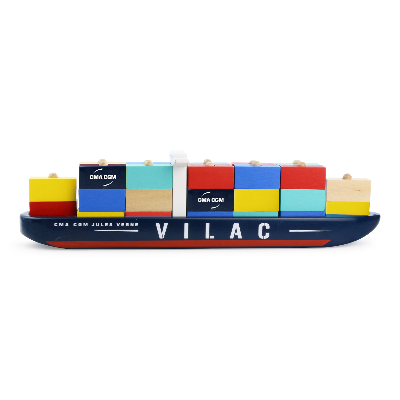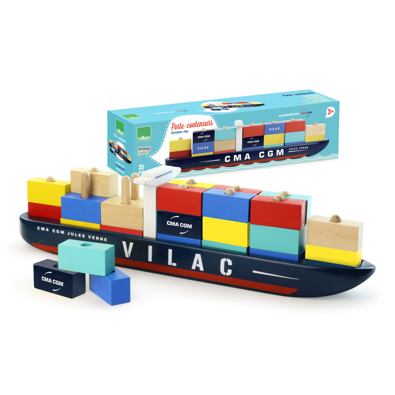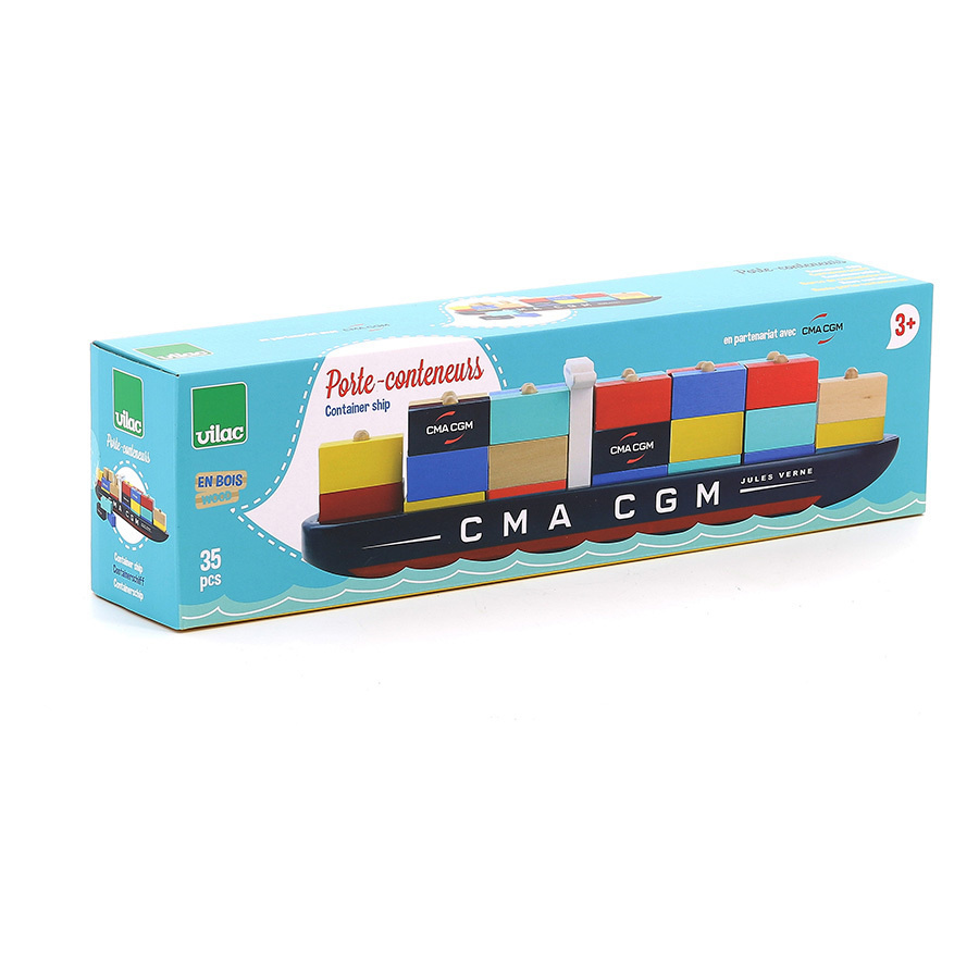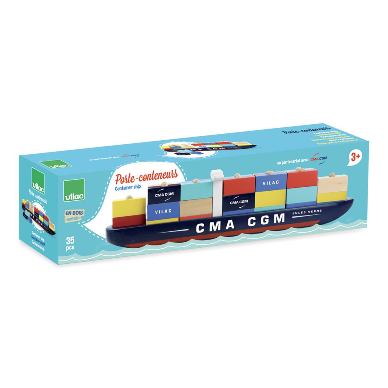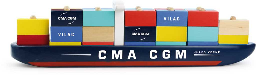 Celodřevěná kontejnerová loď Jules Verne CMA CGM. Naložte loď kontejnery a připravte ji k vyplutí. Hračka je vhodná i jako dekorace. Obsahuje 35 dílků.