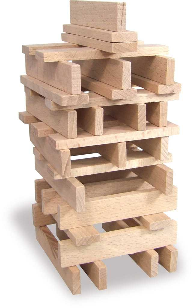 Stavebnice vyrobená z přírodního masivního dřeva. Obsahuje 100 malých desek, které pomáhají dětem rozvíjet jejich představivost. Balení také obsahuje stavební návody.