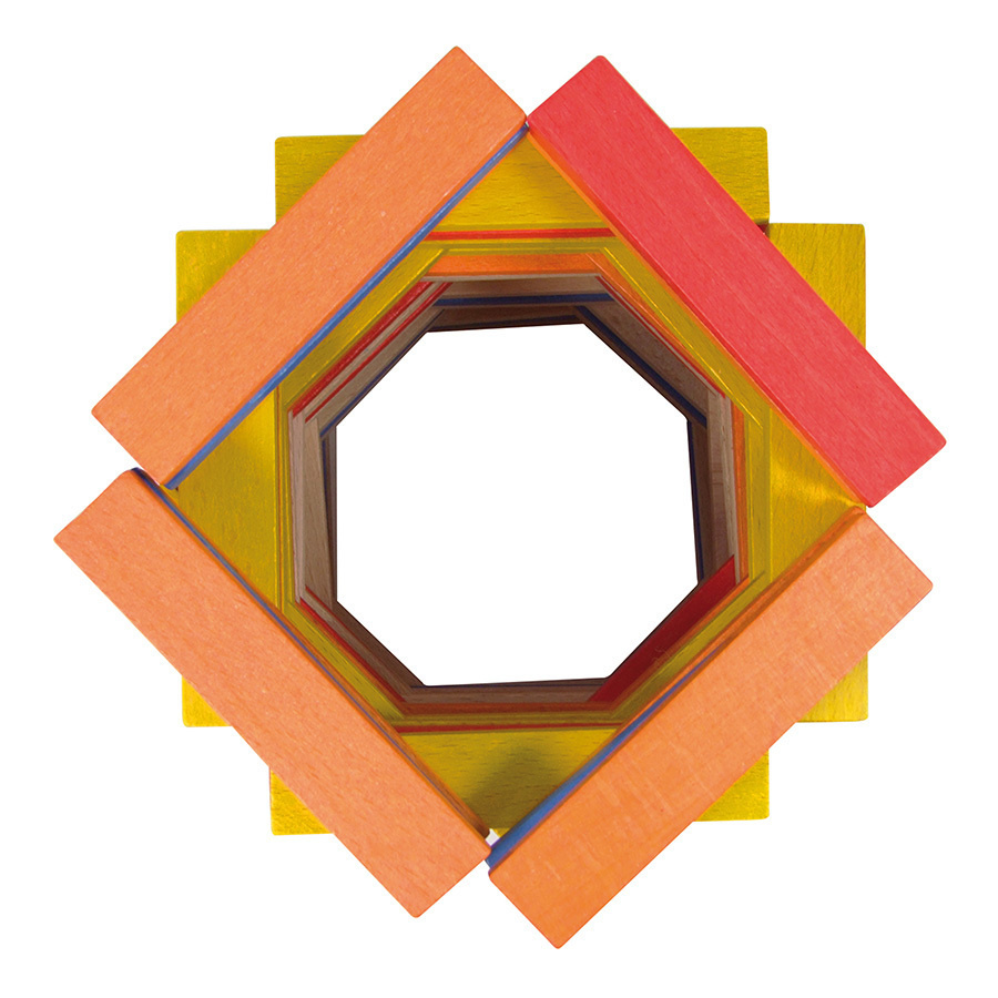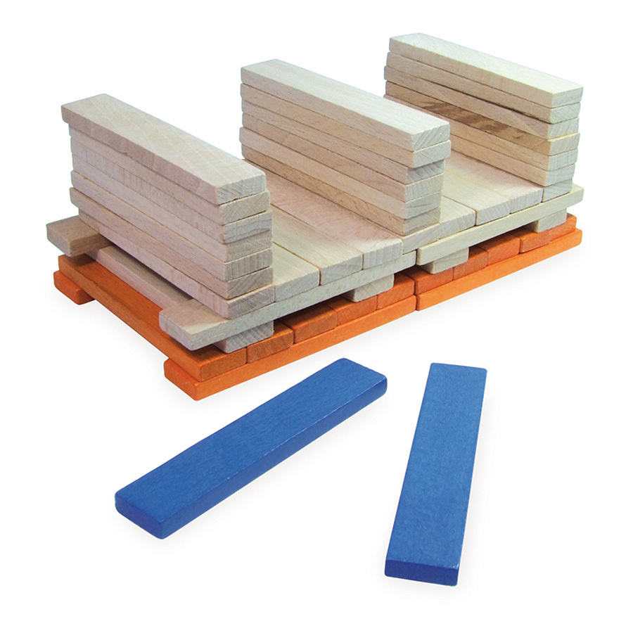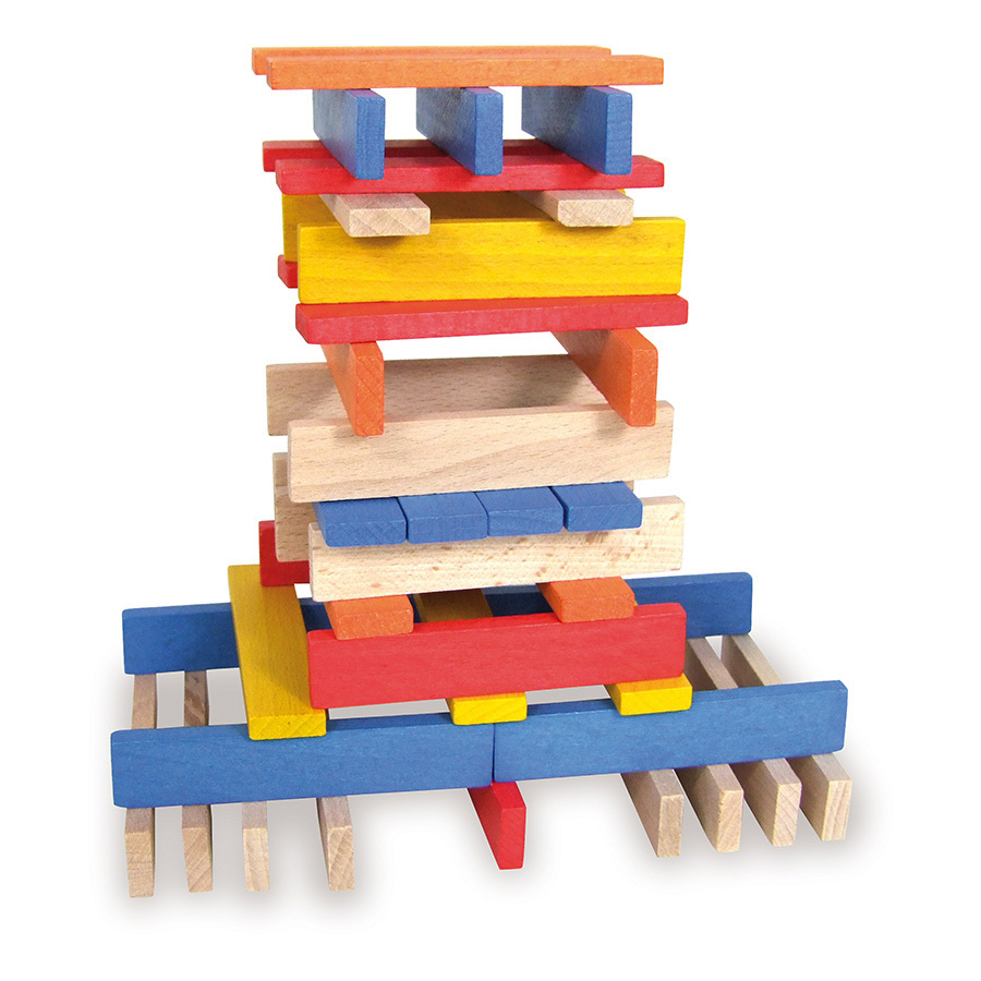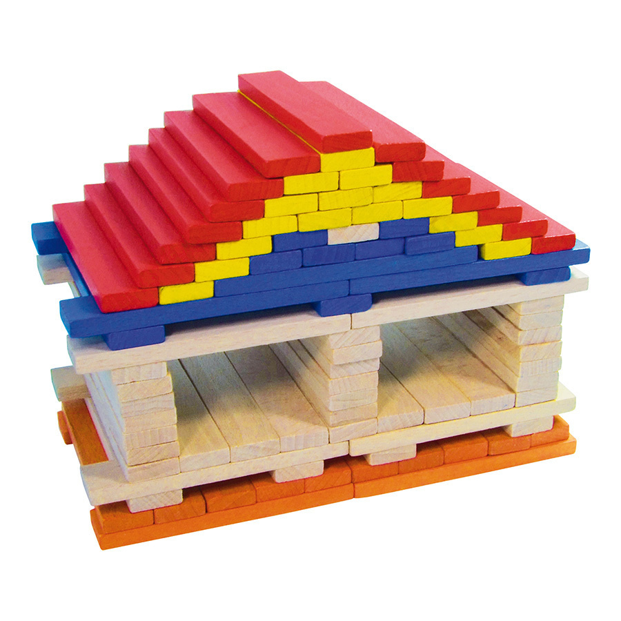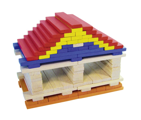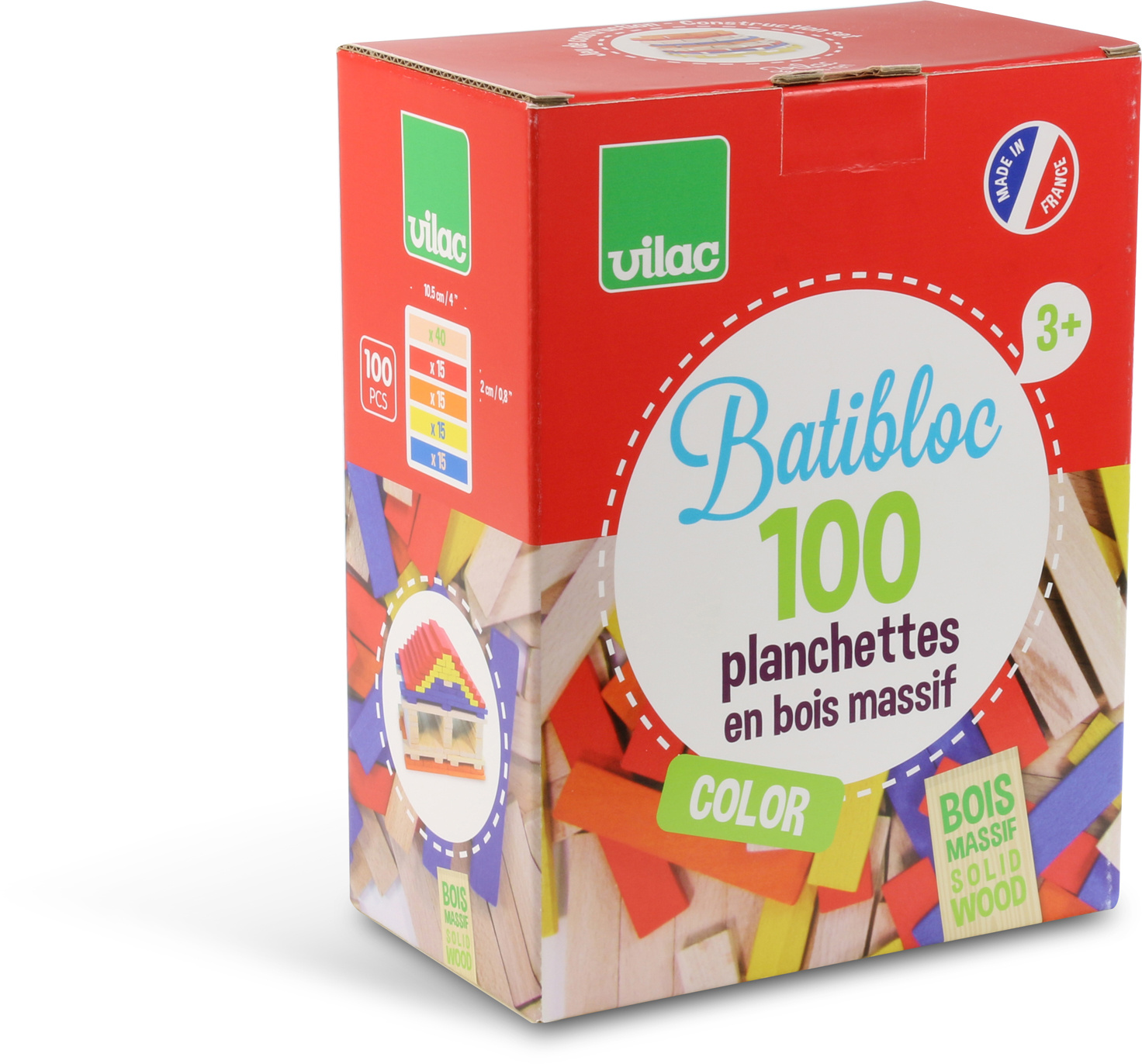 Stavebnice vyrobená z masivního dřeva. Obsahuje 100 malých barevných i přírodních desek, které pomáhají dětem rozvíjet jejich představivost. Balení také obsahuje stavební návody. Vyrobeno ve Francii.