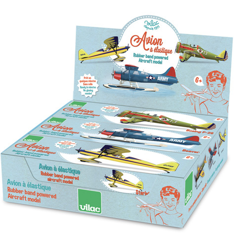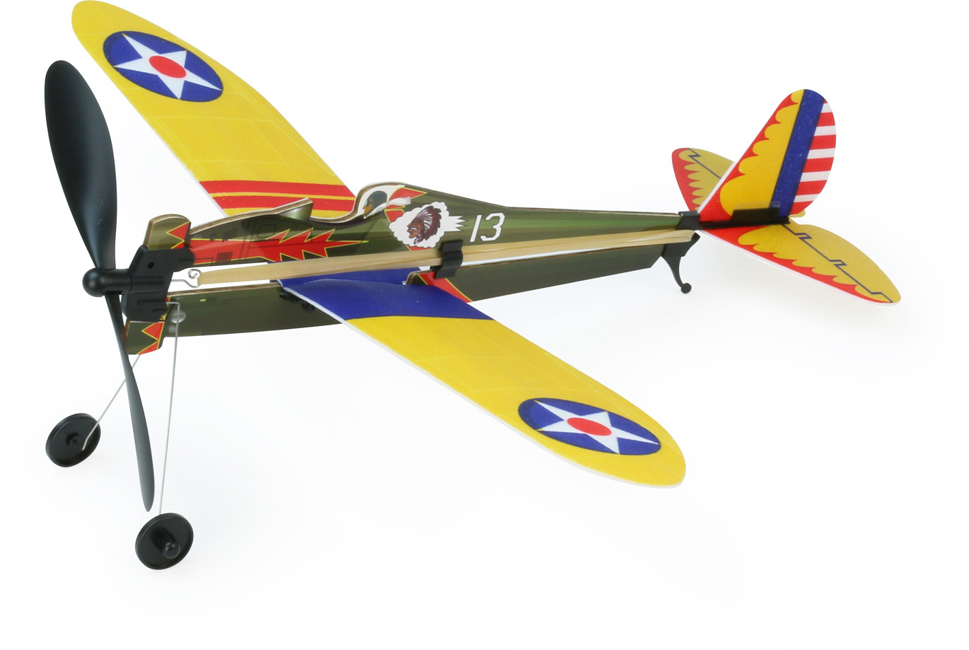 Letadla s natahovací vrtulí – dá se natáhnout gumičkou. Na výběr ze 3 typů letadel, např. Boeing P-26 nebo Beaver.