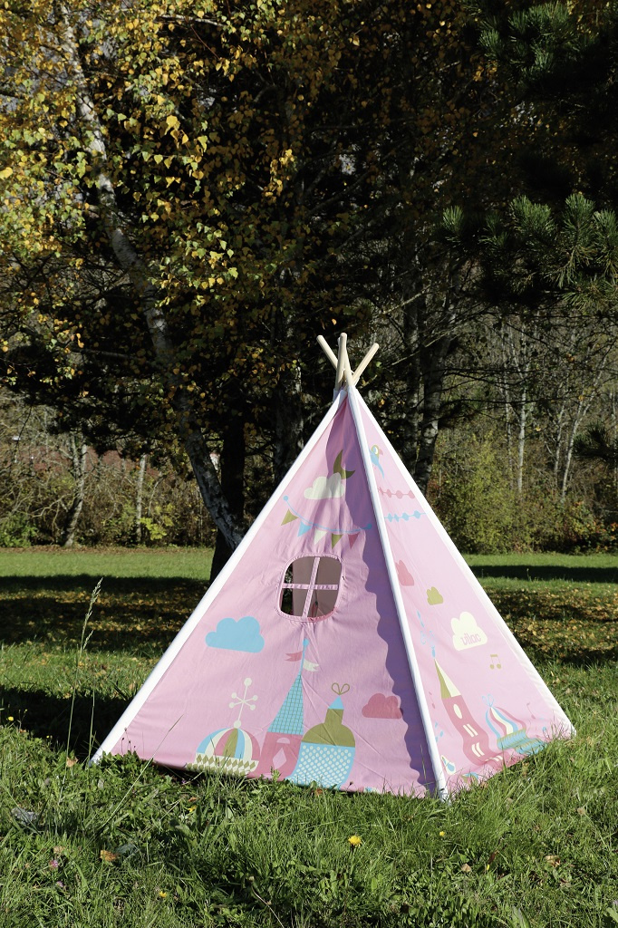 Toto krásné indiánské týpí je ideální pro hraní si na kovboje a indiány.Vhodné zejména k rozložení v interiéru, venkovnímu použití (za sucha) ovšem nic nebrání. Podpěry jsou vyrobeny ze dřeva a zabezpečují maximální stabilitu.