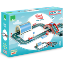 Rozměry: 90x62x12 cm Rozměry balení: 45x31x13 cm Věk: 3+ Materiál: dřevo Obsahuje 35 dílů Velký dřevěný závod oslní variabilitou, díky níž si děti užijí dlouhotrvající zábavu a stanou se piloty formulí. Souprava obsahuje různorodé prvky závodní tratě včetně značek a také trojici autíček. Je součástí Vilacity kolekce a je se všemi jejími součástmi plně kompatibilní, další samostatná rozšíření prohloubí zážitek ze hry. Hlavní vlastnosti:36 dílůzávodní trať, most, tunel, značky a 3 autíčkakompatibilní se všemi součástmi Vilac Vilacity kolekcevyrobeno ekologicky, šetrně k prostředí V2310 – Garáž Vilacity (není součástí sady, najdete v naší nabídce): Příklad sestavy závodu s dalšími součástmi kolekce Vilacity: Dvěděti.cz s.r.o., Sadová 618, 738 01 Frýdek-Místek , dvedeti@dvedeti.cz