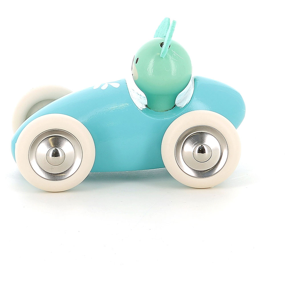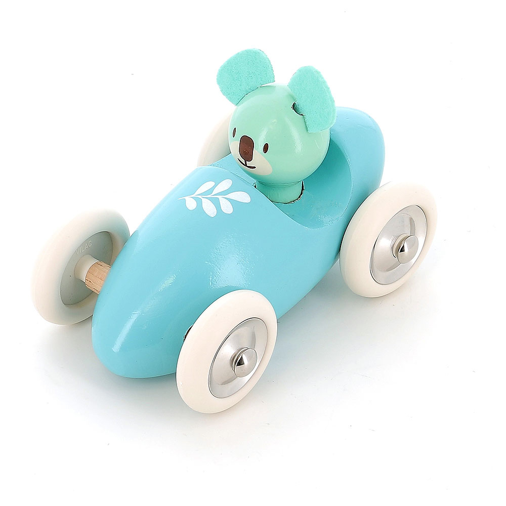 Závodní autíčko je součástí kolekce Boizoos které se inspirovala postavičkami zvířátek a je ve stejném designu k dostání také jako hrací skříňka, chrastítko nebo deštník. Tato hračka je vyrobena ve Francii v dílně Jura a je lakována jedinečným procesem ponoření do lakové lázně.