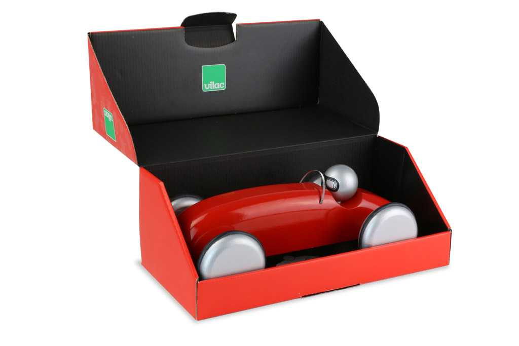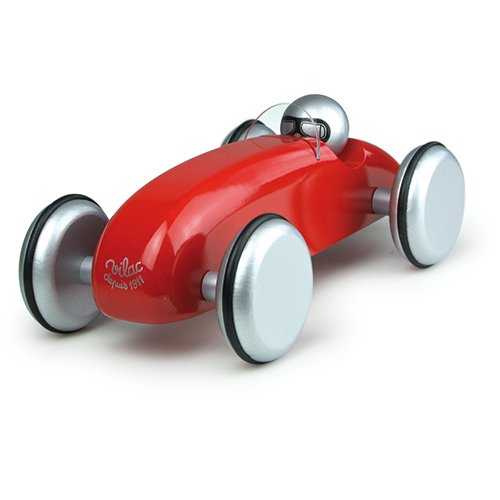 Červené závodní auto vyrobeno z lakovaného dřeva. Je vhodné jak ke hraní tak jako dekorace do pokojů dětí či dospělých. Vyrobeno ve Francii.