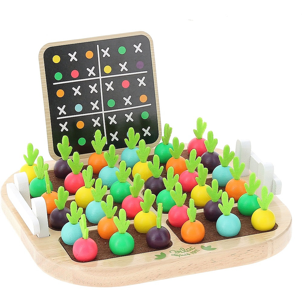 Zeleninové sudoku pro nejmenší! Cíl hry je jednoduchý – musíte umístit dřevěnou zeleninu do zahrádky dle jedné z kartiček, poté dle pravidel sudoku vyplnit prázdná políčka. V jednom čtverci, řádku a sloupci se nesmí opakovat stejná barva. Zábavná a barevná hra pro lidi všeho věku!