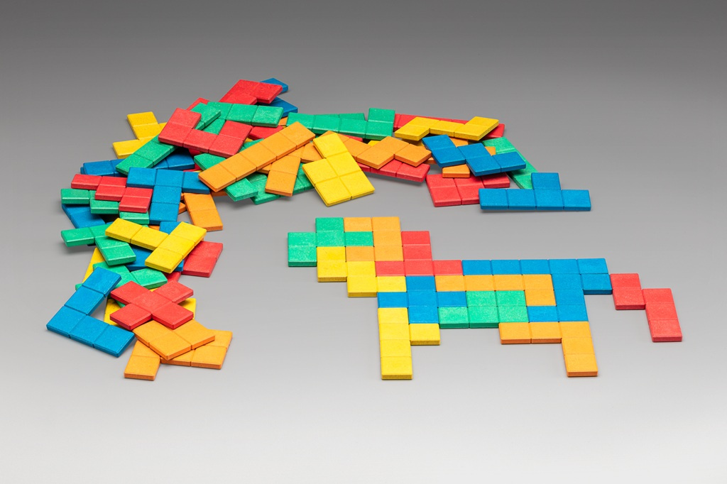 Pomocí 60 ks pentomin v 5 barvách (12 pentomin od každé barvy) si děti mohou poskládat různé obrázky dle vlastní fantazie nebo vyplňovat obrázky, kde je vyznačen pouze obrys. Prostřednictvím hry získají první zkušenosti s geometrií, zjistí, co je plocha a obvod, které útvary jsou symetrické a které ne. Pentomina jsou vyrobena z recyklovaného dřeva v pestrých barvách – červené, zelené, modré, oranžové a žluté. Vyrobeno z pevného 100% recyklovaného dřeva s certifikací PEFC, které je po použití opakovaně recyklovatelné, a zabaleno v kartonové krabičce.
