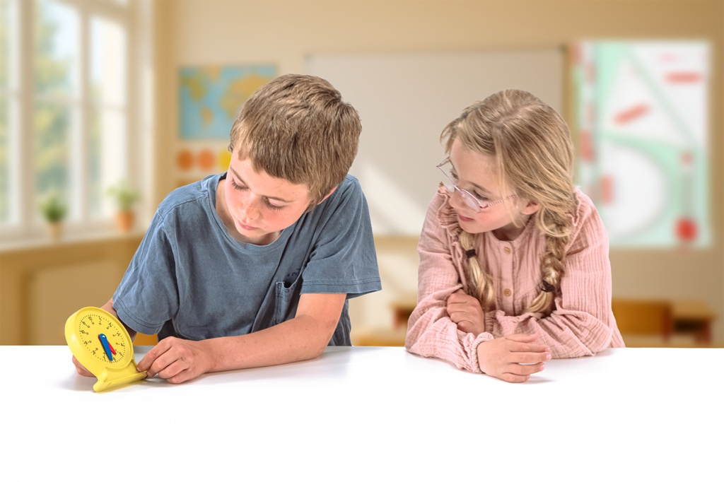 Děti mají možnost zapojit vlastní zkušenosti k tématu času a hodin. Učí se pojmenovávat čísla na ciferníku i jednotlivé ručičky (hodinovou a minutovou) a porozumět principu 24hodinového dne, kdy se každá hodina opakuje dvakrát – dopoledne a odpoledne. Osvojují si také propojení denních dob s běžnými činnostmi (např. ráno – snídaně). Důraz je kladen na rozlišení mezi konkrétním časovým bodem a časovým úsekem. Děti se učí určovat jednoduché časové úseky na základě počátečního a koncového času, nastavovat ručičky hodin a ukazovat celé, půl a čtvrt hodiny. Zároveň si procvičují různé způsoby zápisu a čtení času s využitím vystouplého ciferníku a nastavitelných, synchronizovaných ručiček. Dalšími dovednostmi je převádění časových údajů mezi různými jednotkami, zápis časových hodnot, používání měřících údajů a standardizovaných jednotek. Žáci se učí rozpoznávat a řešit slovní úlohy s časovými údaji a přistupovat k nim podle své individuální úrovně a schopností.
