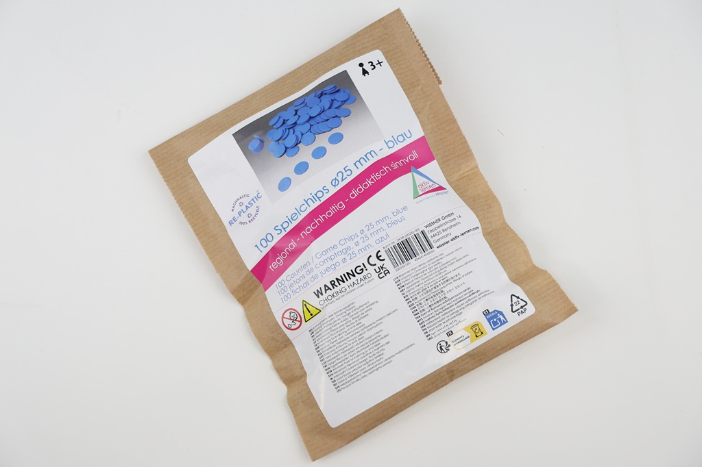 Univerzální herní žetony vhodné jako doplněk ke společenským a výukovým hrám. Podporují rozvoj porozumění množství, třídění a porovnávání. Ideální pro počítání, bodování nebo vizuální znázornění úloh. Vyrobeno ze 100% recyklovaného plastu, který je po použití opakovaně recyklovatelný. Zabaleno v uzavíratelném papírovém sáčku s certifikací FSC.