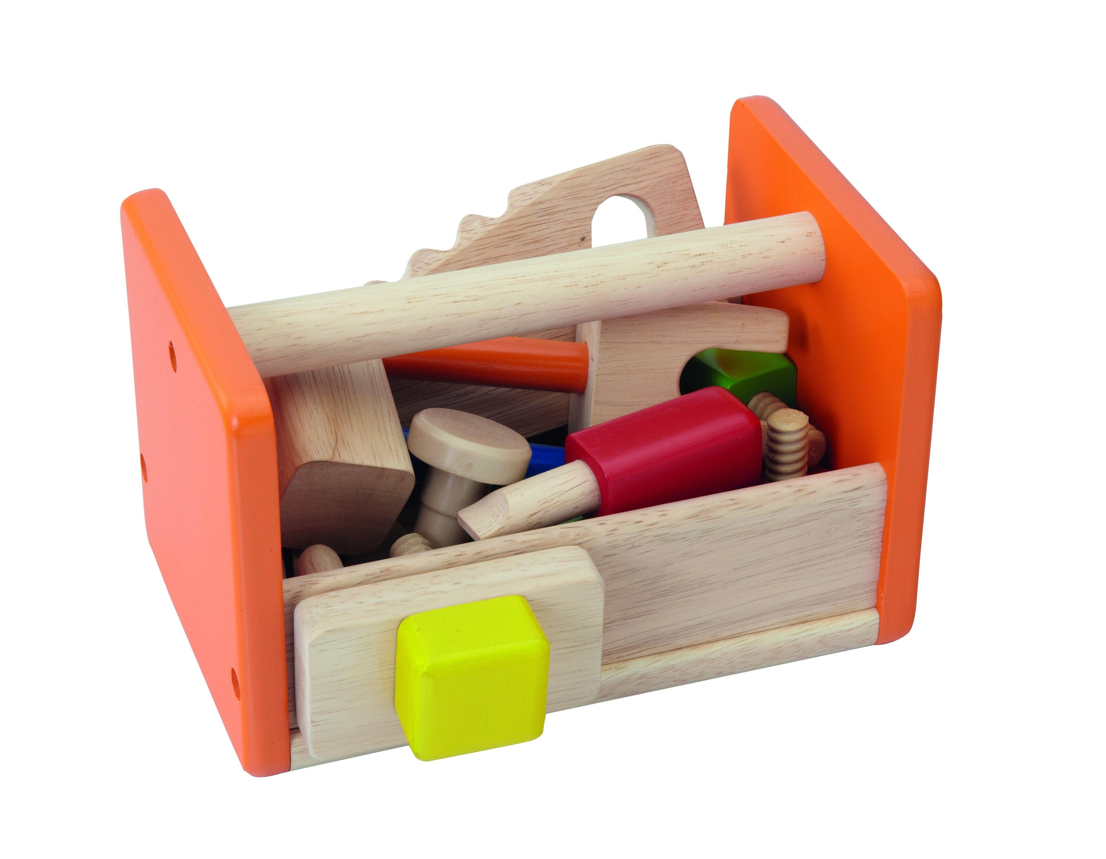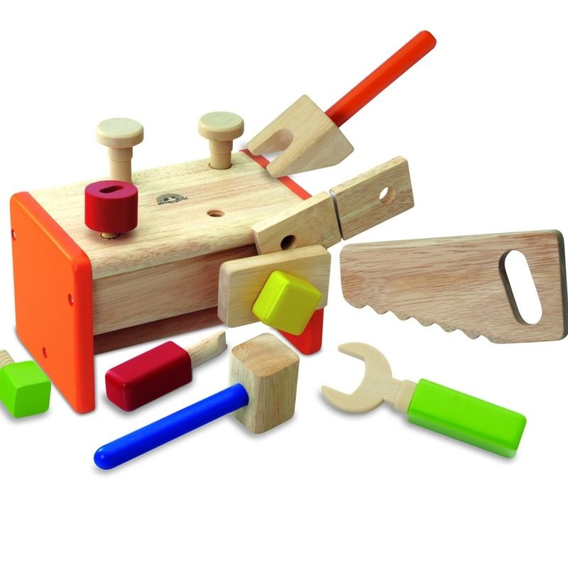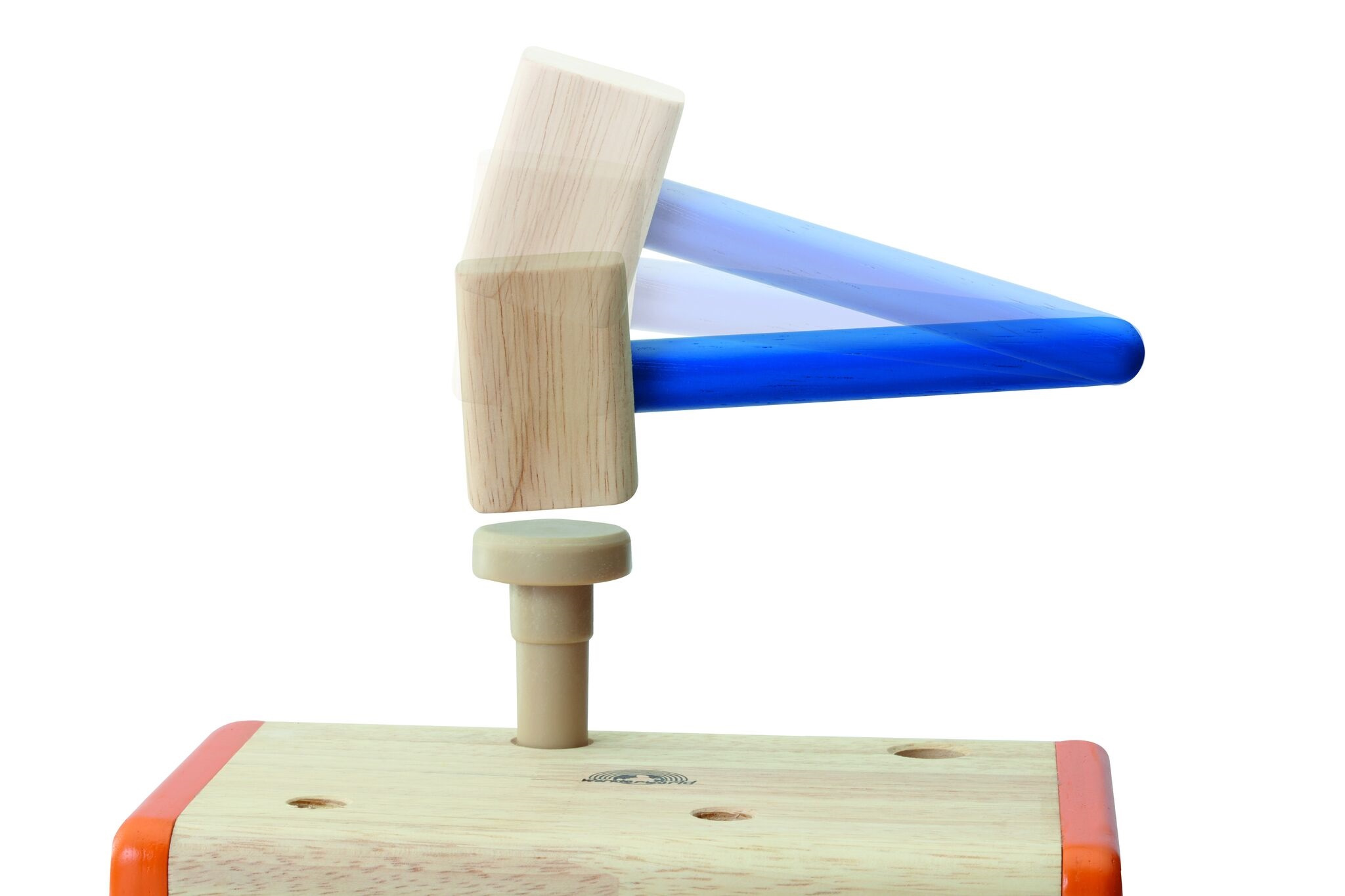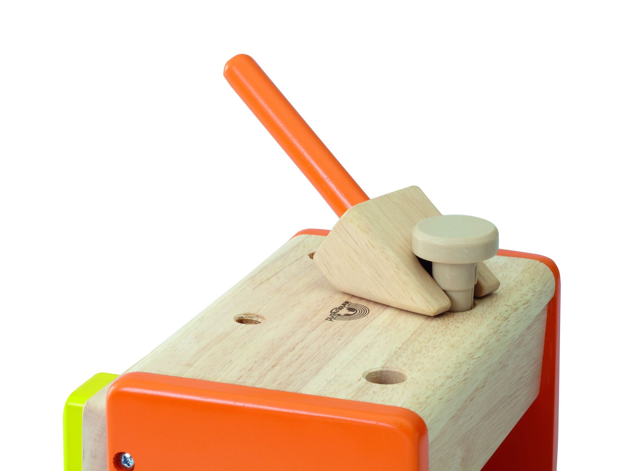 Podpořte v rozvoji svého malého domácího kutila pomocí promyšlené soupravy nářadí. Nářadí je dodáváno v praktické bedýnce s madlem, která se po otočení promění na dílenský stůl vybavený svěrákem. Děti se s pomocí této hračky mohou naučit základním manuálním dovednostem, použití klíče, kladívka nebo páky. Díky promyšlenému návrhu se také naučí třídit věci dle účelu a Vy díky němu ušetříte místo. Hračka je vyrobena z detailně opracovaného, odolného masivního dřeva a dřevoplastu, přitom atraktivně spojuje přírodní a syté barevné odstíny.